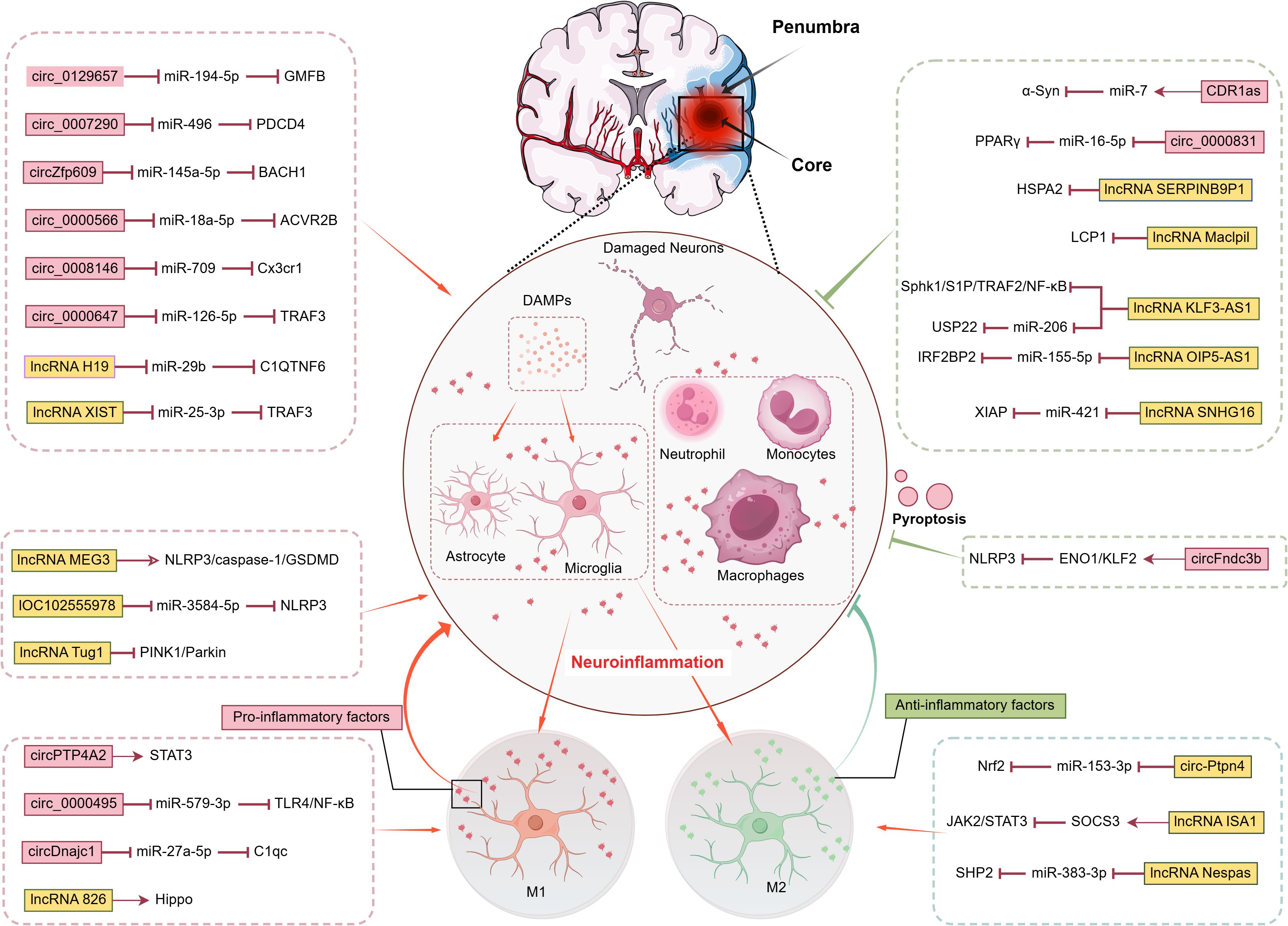 5.2.2 ncRNAs drive pro-inflammatory polarization and neuroinflammatory injury