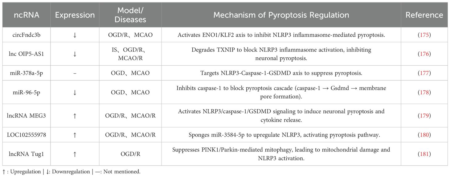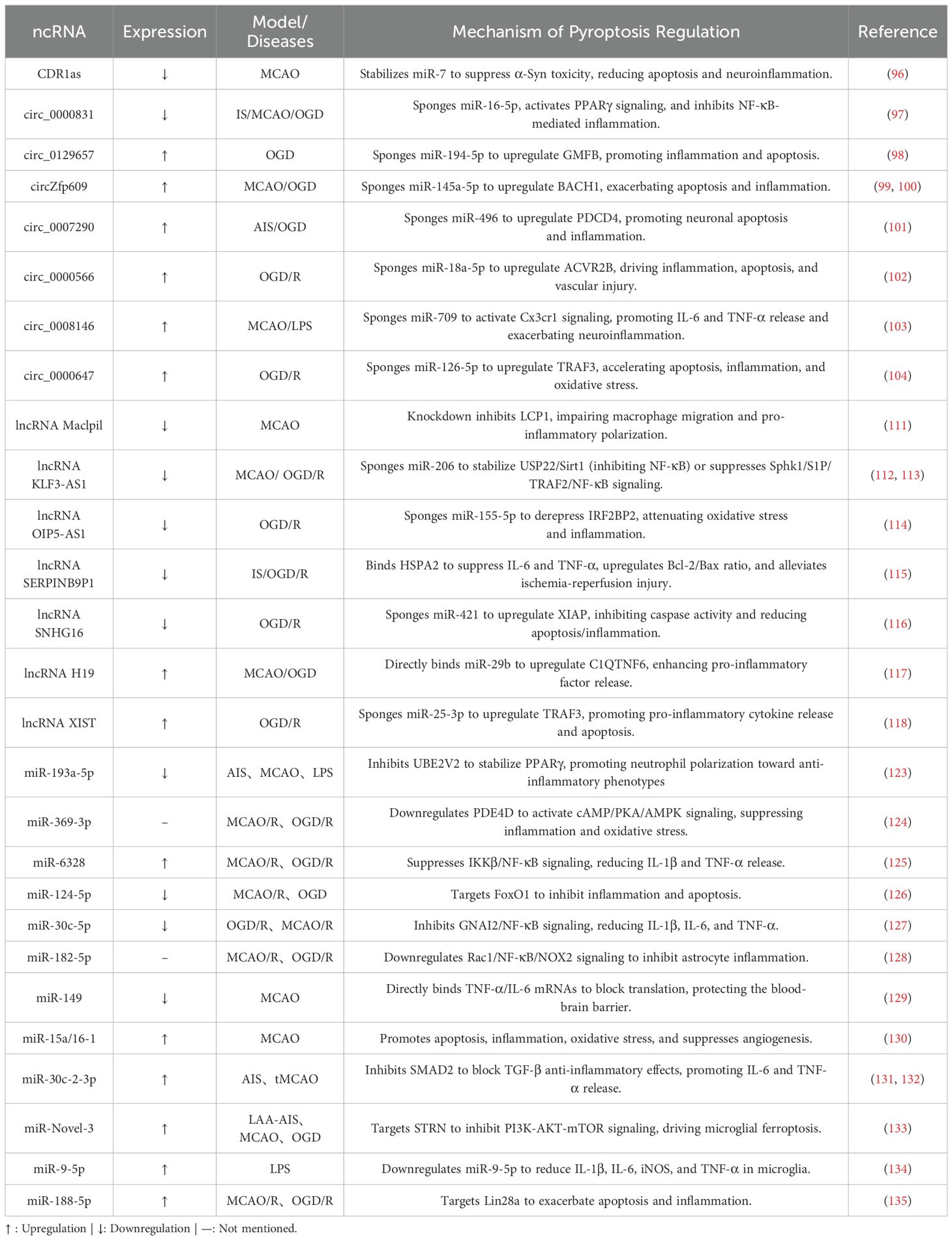 6 ncRNA regulation of pyroptosis in IS: linking inflammation and neuronal death