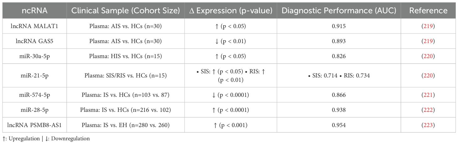219. He P, Jiang H, Zhu J, Hu M, and Song P. Identification and validation of the inflammatory response-related LncRNAs as diagnostic biomarkers for acute ischemic stroke. Sci Rep. (2025) 15:13818. doi: 10.1038/s41598-025-98101-0