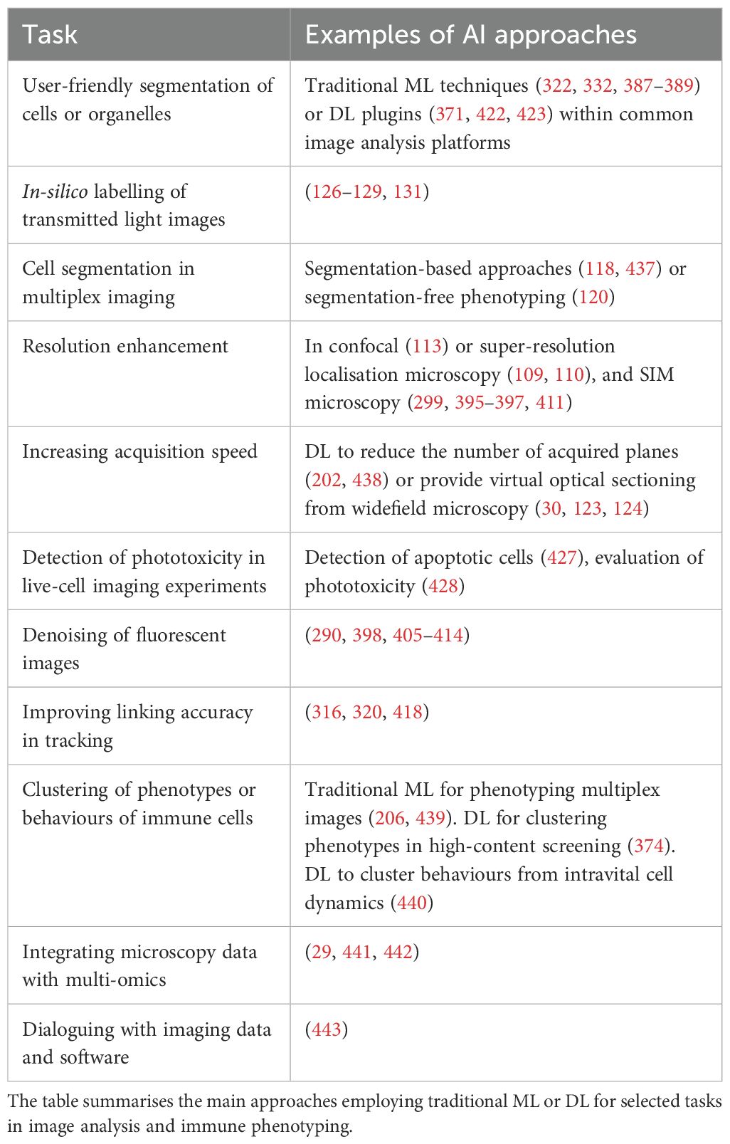 The need for openness is even more pressing when AI solutions are implemented, as AI methods are inherently based on probability and as such not prone to reproducibility, and often the general audience employs such methods without a thorough understanding of their applicability and limitations. The second part of this Review aims to clarify some of the concepts and uses of AI for microscopy and immunology.
