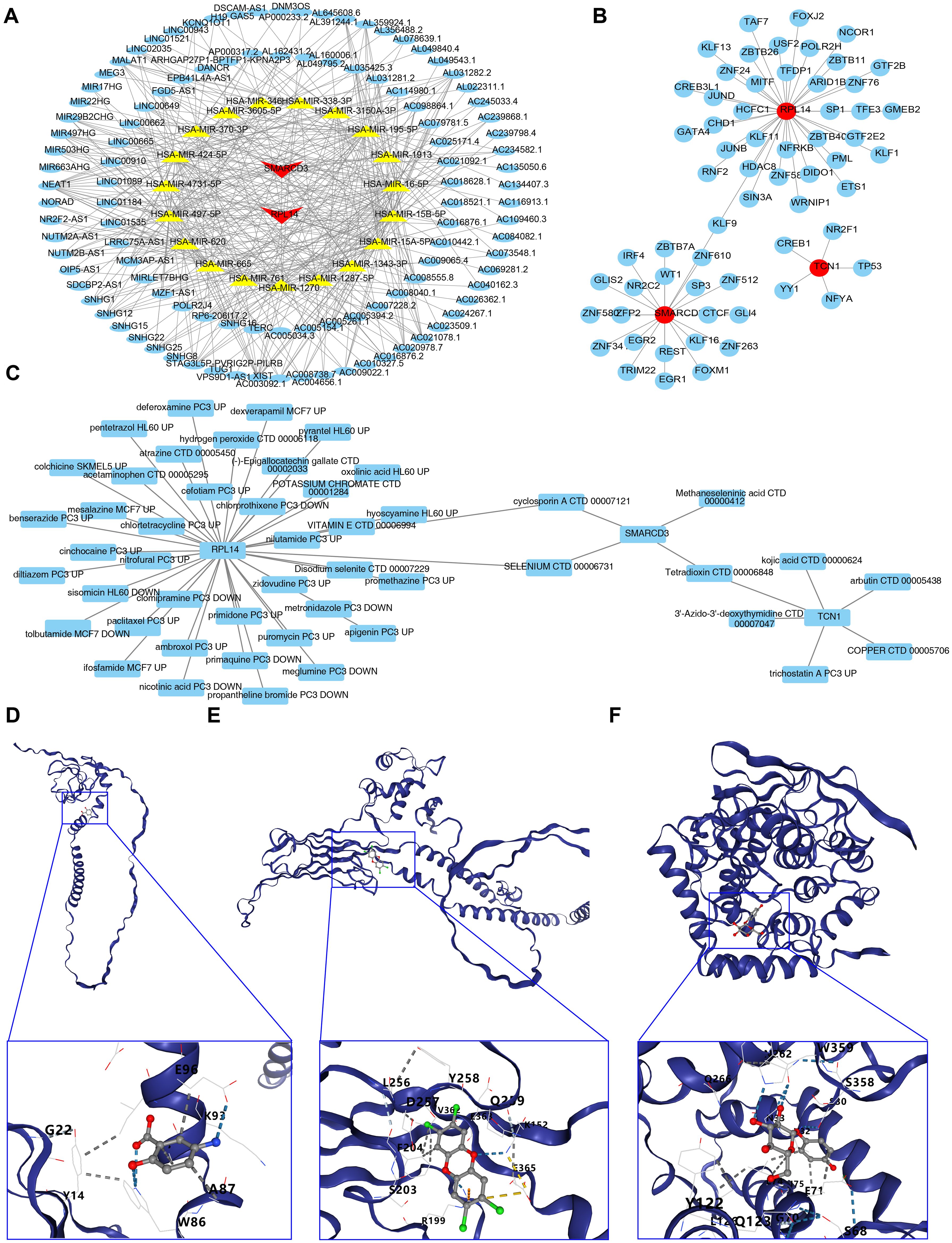 3.7 The regulatory networks of RPL14, SMARCD3, and TCN1 were constructed