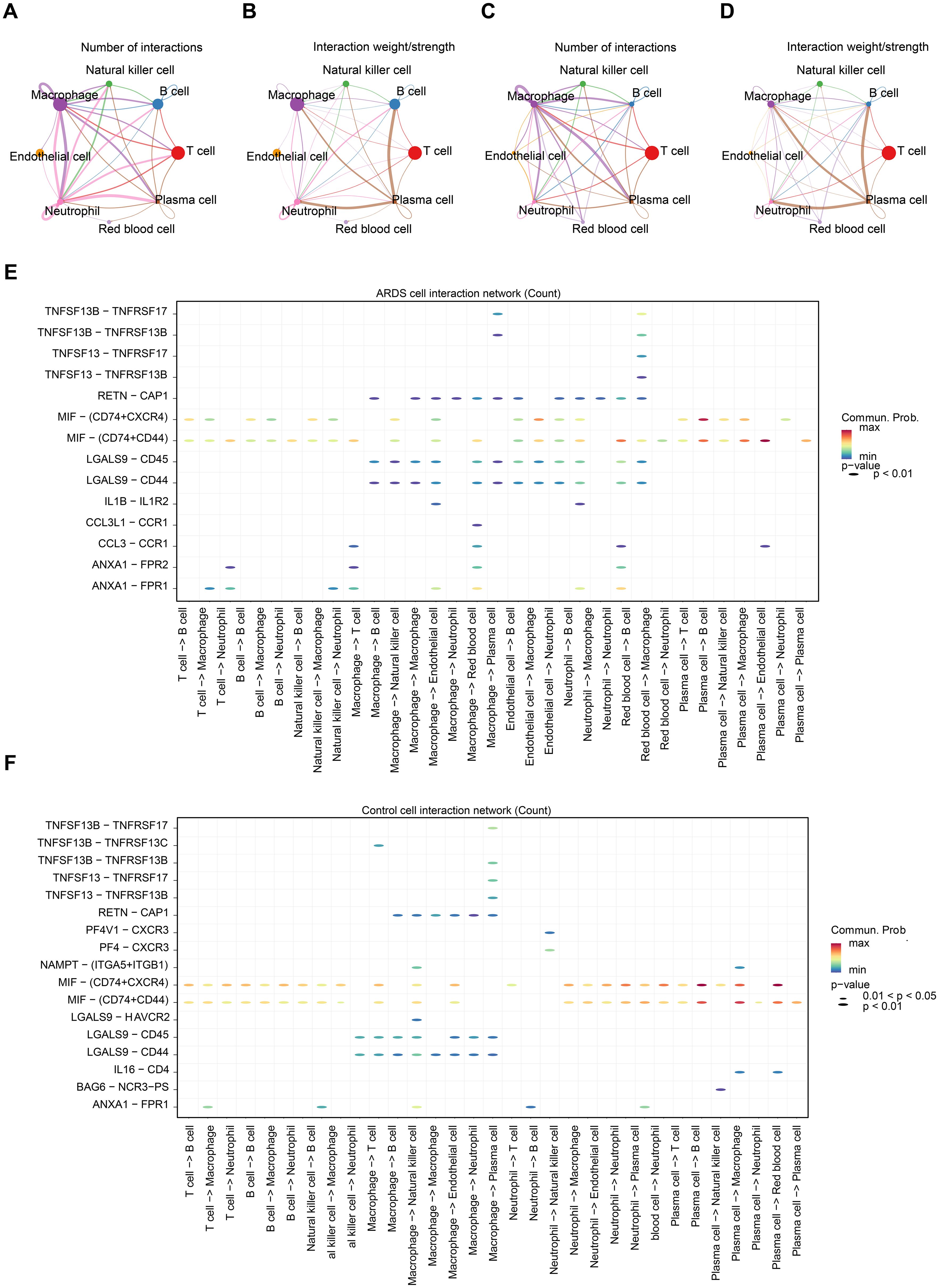 The ARDS and control sample data from the GSE180578 dataset were used to analyze cellular communication networks between different cell types using the CellChat (v 1.6.1) package (60). The interaction relationships of receptors and ligands for each cell type were determined. Additionally, the Wilcoxon test was applied to assess differences in the expression of biomarkers across different cell types in ARDS and control samples (P < 0.05) to identify key cells.