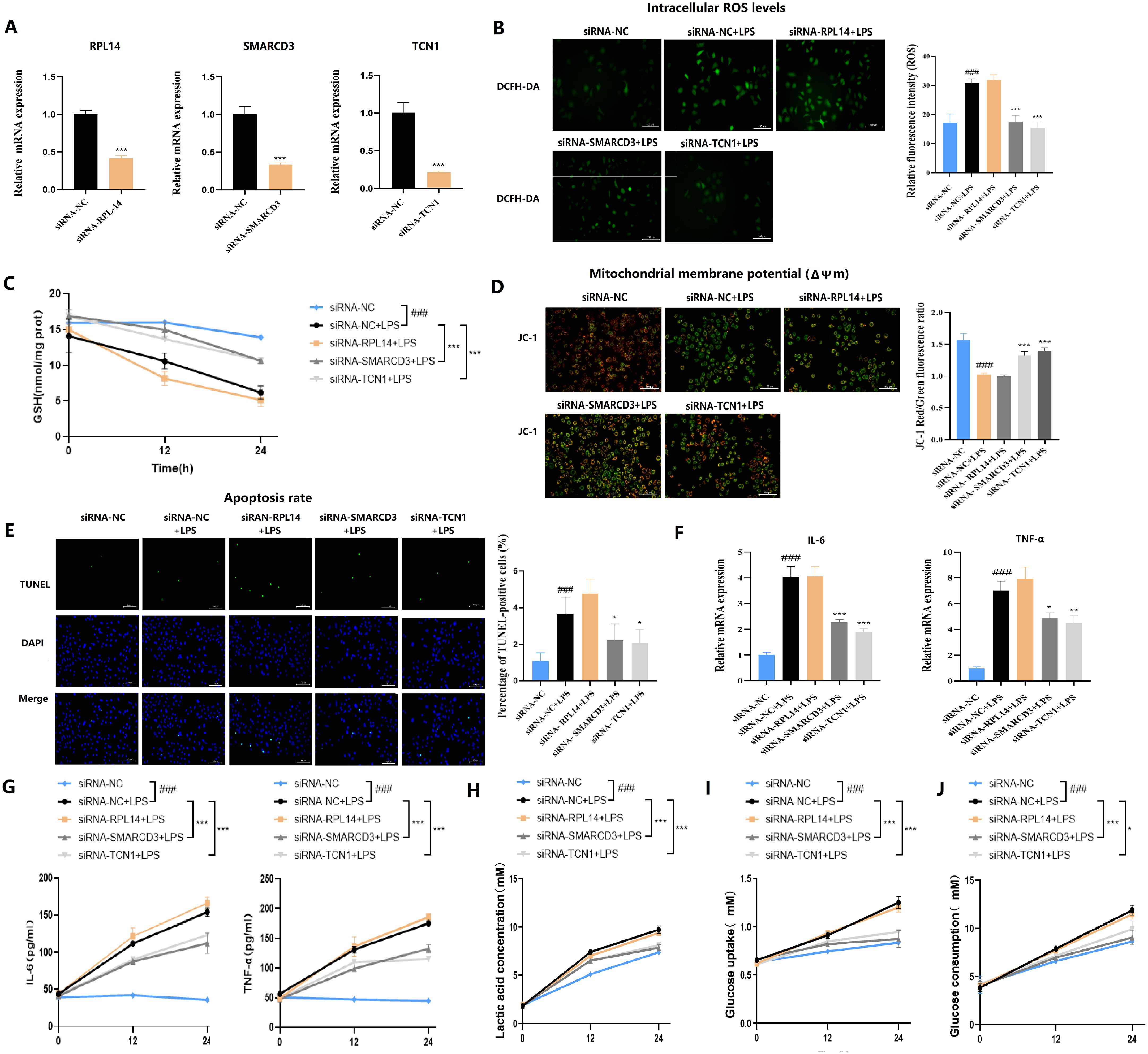 RPL14 siRNA, SMARCD3 siRNA, TCN1 siRNA, and negative control siRNA were synthesized by GENCEFE Biotech Co., Ltd. (Wuxi, China) siRNA sequences are provided in Supplementary Table 4.The siRNAs were reverse-transfected into cells using Lipofectamine 2000 (Invitrogen, Cat#11668019,USA) according to the manufacturer’s protocol. After 24 hours of transfection to allow for gene silencing, the cells were stimulated with 1 μg/ml LPS.