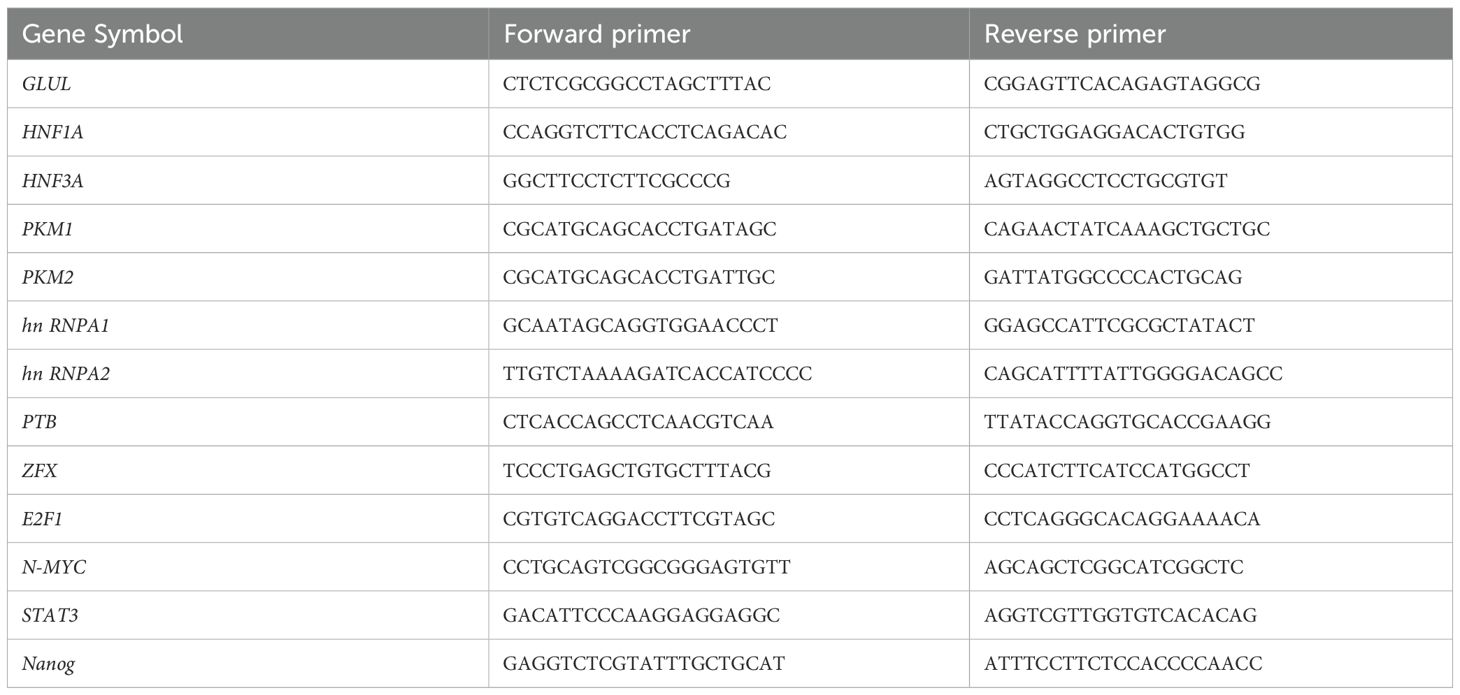 Cells or tissue were lysed in RIPA buffer (Beyotime, China) supplemented with protease and phosphatase inhibitor cocktails (Thermo Fisher Scientific, USA). Lysates were centrifuged at 12,000 × g for 15 minutes at 4°C to remove cellular debris. The supernatant was collected, and protein concentrations were determined using the BCA Protein Assay Kit (Thermo Fisher Scientific, USA) according to the manufacturer’s instructions. 20µg protein were separated by SDS-PAGE and transferred onto polyvinylidene fluoride (PVDF) membranes (Millipore, USA). Membranes were blocked with 5% non-fat milk in TBST for 1 hour at room temperature and then incubated overnight at 4°C with primary antibodies against GLUL (1:1000; abcam, ab64613), HNF1A (1:1000; Cell Signaling Technology[CST], 89670), HNF3A (1:1000; CST, 58613), PKM1 (1:1000; CST, 7067), PKM2 (1:1000; CST, 4053), PKM1/2 (1:1000; CST, 3190), GAPDH (1:1000; CST, 2146),Hexokinase I (1:1000; CST, 2024), Hexokinase II (1:1000; CST, 2867), PD (1:1000; Abcam, ab110335), PFKP(1:1000; CST, 3190),LDHA (1:1000; CST, 3582), and β-tubulin (1:1000; CST, 2146). After washing, membranes were incubated with appropriate HRP-conjugated secondary antibodies for 1 hour at room temperature. Protein bands were detected using enhanced chemiluminescence (ECL) reagents (Bio-Rad, USA) and imaged with a digital chemiluminescence system. All immunoblots were performed in at least three independent biological replicates.