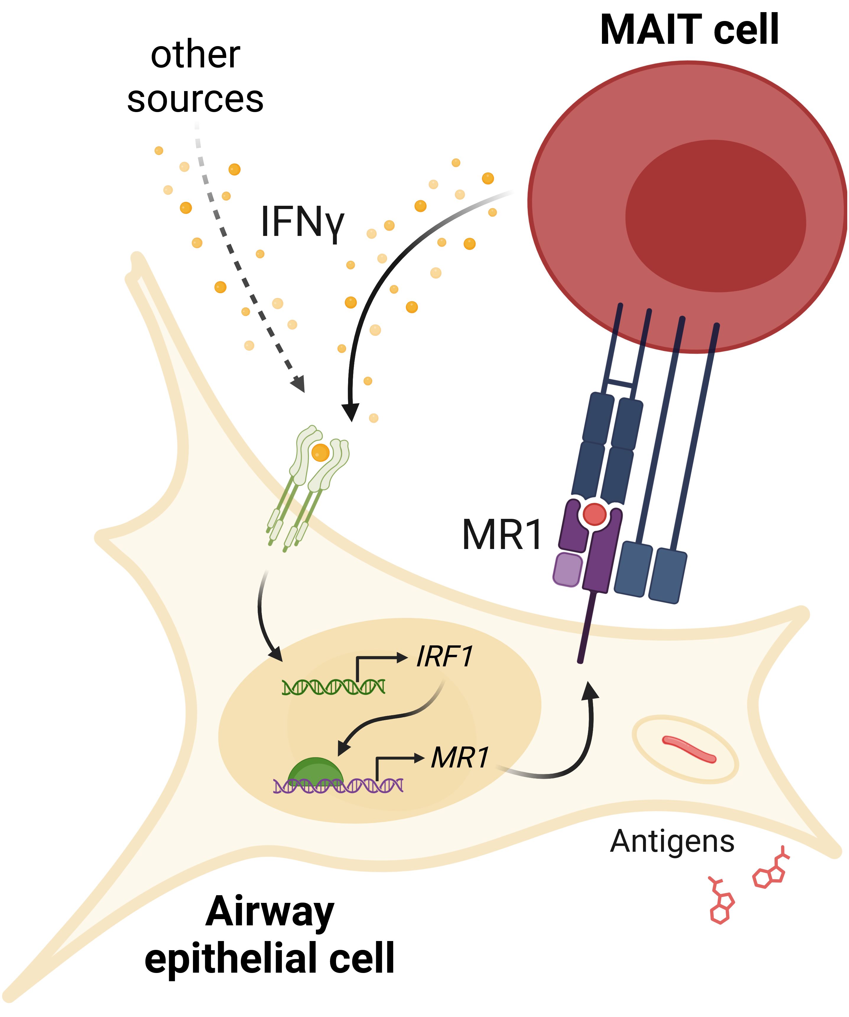 Keywords: MAIT (mucosal-associated invariant T) cell, MR1, airway epithelial cell, interferon-gamma, IRF1