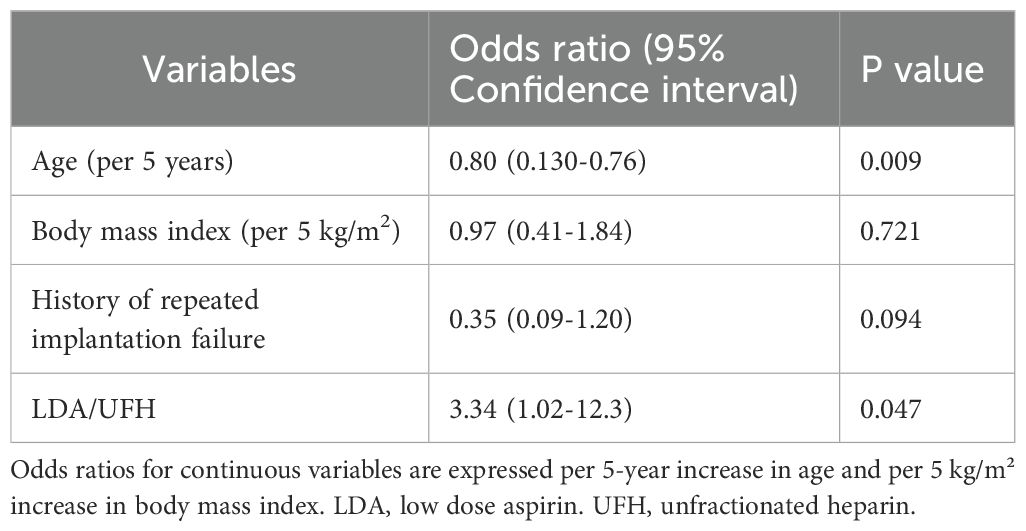 Table 5. Logistic regression analyses for clinical factors and diseases associated with clinical pregnancy.