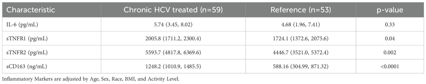 Inflammatory markers at baseline and after HCV Cure: HCV vs reference group