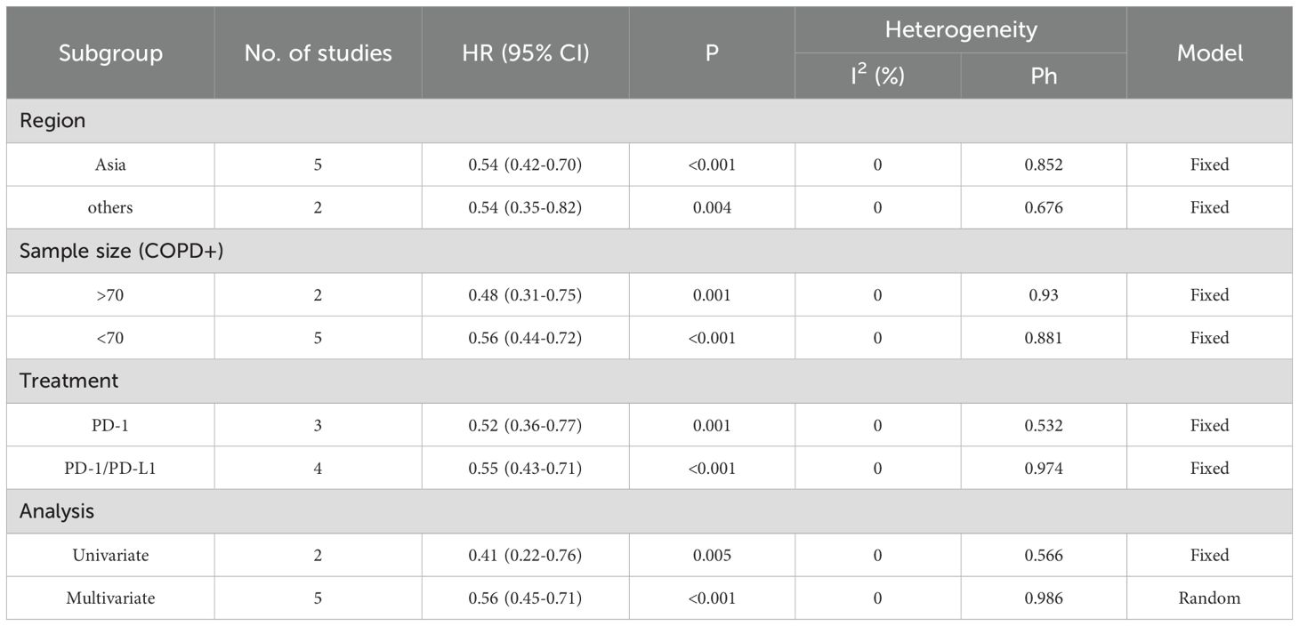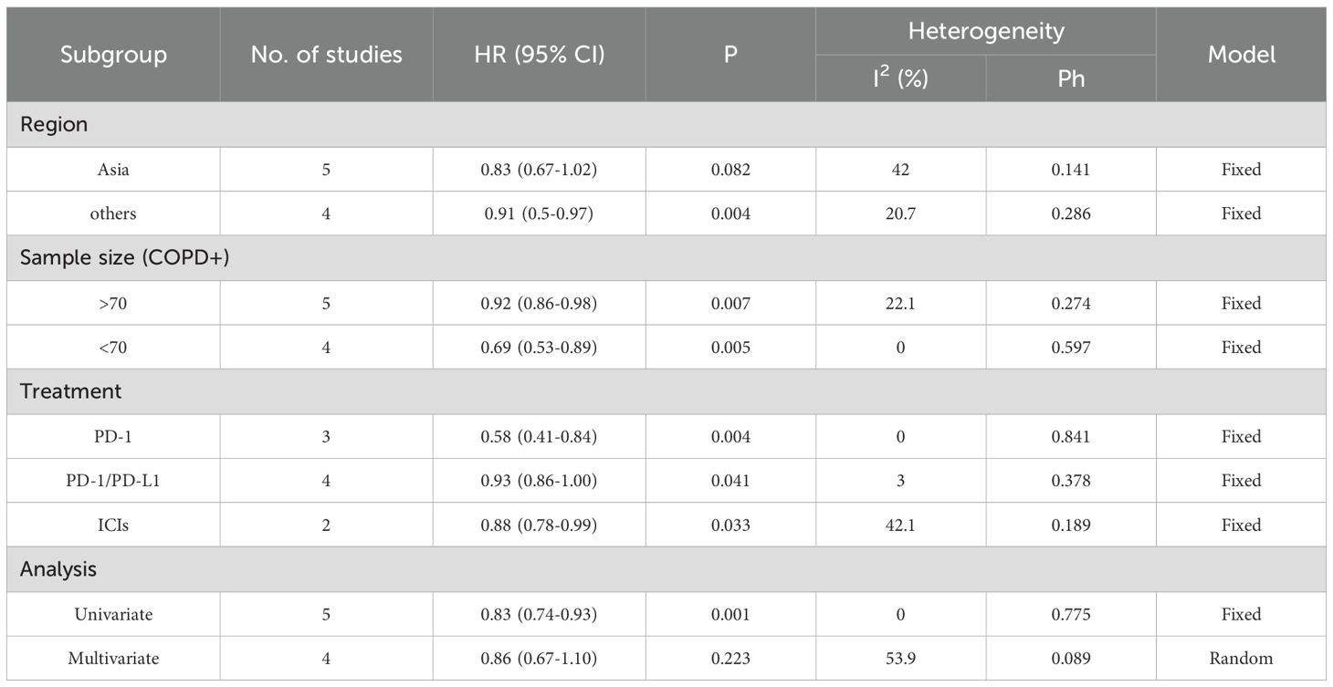 Table 3. Subgroup analysis of OS in the COPD-lung cancer immunoaxis meta-analysis of patients treated with ICIs.