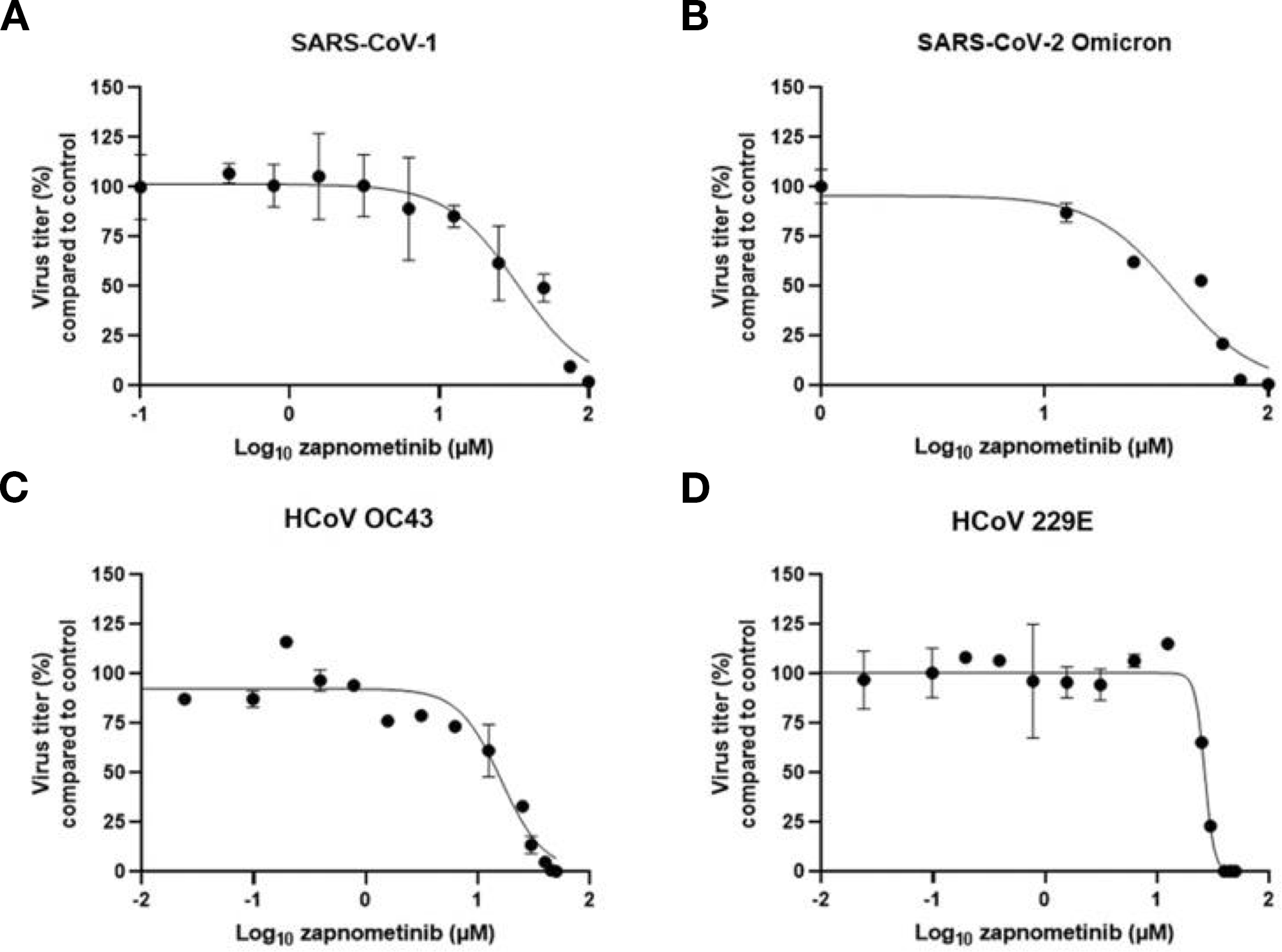 3.1 Zapnometinib inhibits propagation of coronaviruses in vitro