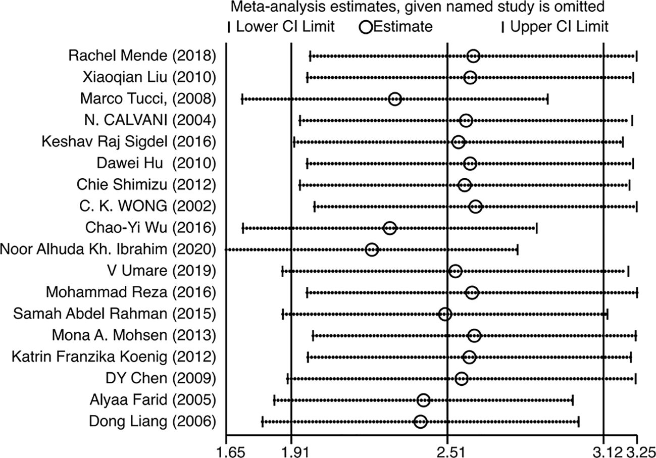 Figure 6. Sensitivity analysis of the pooled standard mean variance (SMD).