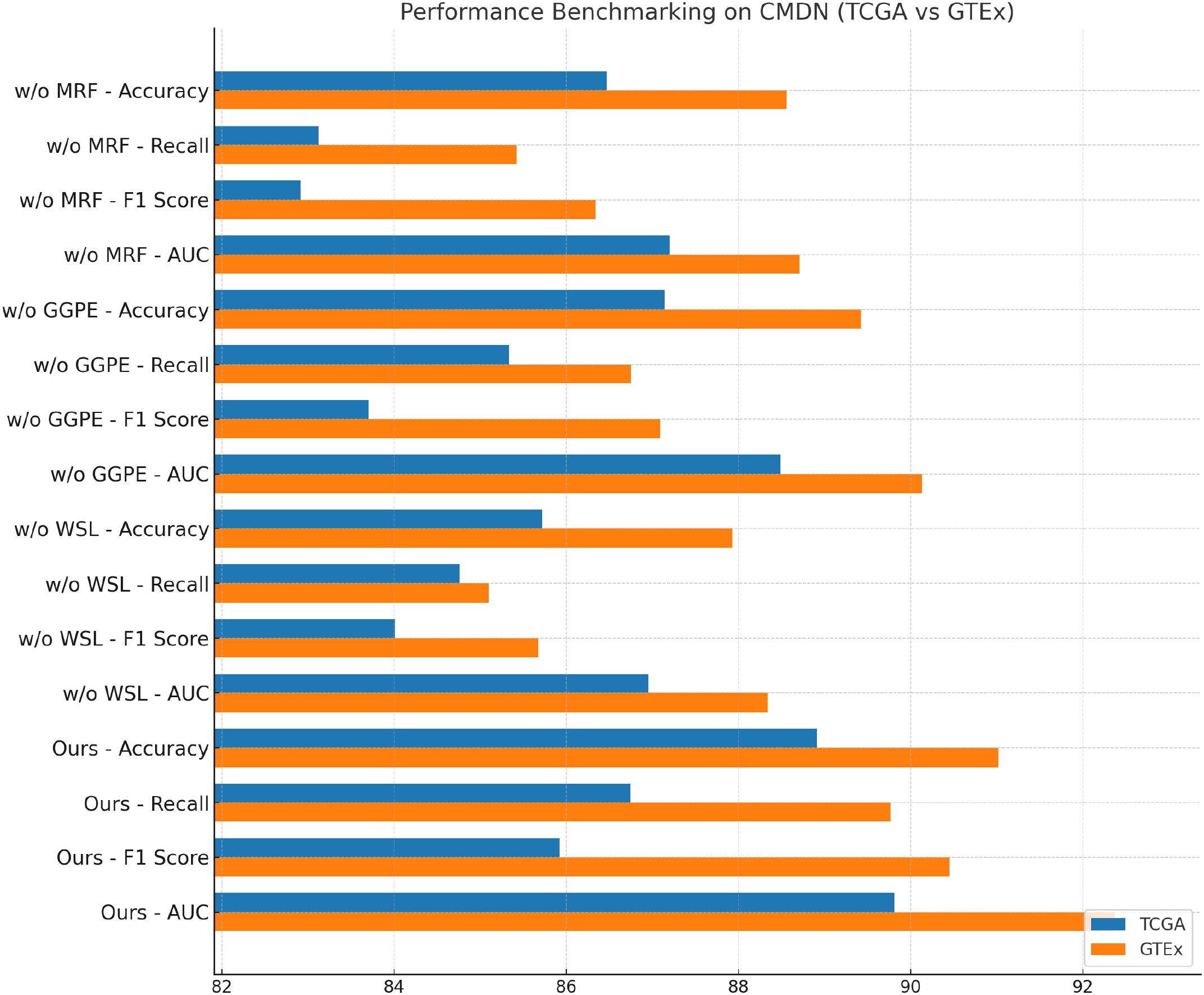 Figure 7. Performance benchmarking of our approach against leading techniques on BioGraphAI across TCGA and GTEx dsatasets.