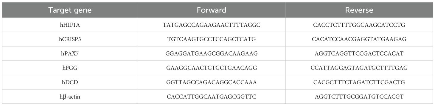 Total RNA was extracted using Trizol (ThermoFisher, Waltham, MA, USA) according to the manufacturer’s instructions, and 1 μg of total RNA from each cell line was used to transcribe into cDNA using TransScript® One-Step gDNA Removal and cDNA Synthesis SuperMix (Beijing Quanshijin Biotechnology Co., Ltd., Beijing, China). Quantitative real-time PCR (qRT-PCR) was performed using the PerfectStart Green qPCR SuperMix on the Bio-Rad CFX96 RealTime PCR system (Bio-Rad, US) with the program of 94°C for 30 s, 45 cycles of 94°C for 5 s and 60°C for 30 s. The relative gene expression levels were calculated using the 2-ΔΔCt method with β-actin as an internal control. The primer sequences used in this experiment were listed in Table 1.