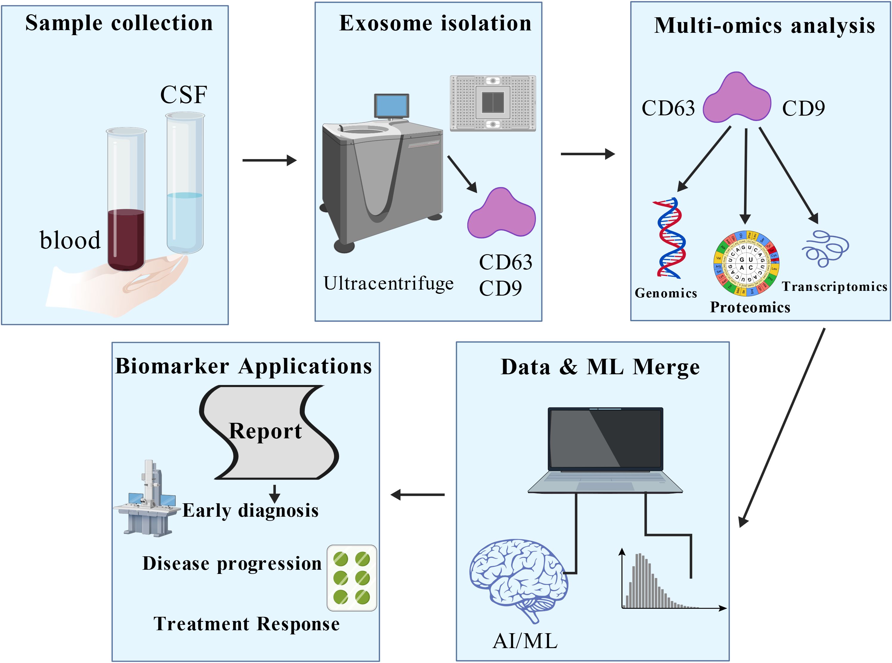 Despite the richness of molecular information contained in exosomes (54), screening for specific markers that are highly correlated with HIV-1 infection progression remains challenging. Traditional biomarker discovery strategies are limited by the complexity of multidimensional data. The introduction of machine learning techniques has provided a breakthrough direction for this bottleneck. It has been proposed that random forest classifiers can significantly outperform the predictive efficacy of traditional statistical methods by integrating exosomal proteomics, transcriptomics, and clinical parameters in the application scenario of identifying cancer-related markers (55, 56). This methodological advancement drives innovation for HIV research: an integrated analysis framework based on deep learning-driven fusion of multi-omics data and artificial intelligence may resolve key feature profiles associated with viral load, latent reservoir activation, or immune exhaustion from the exosomal molecular network, leading to accurate disease stratification models (57). Future studies need to further validate the applicability of such computational biology strategies in longitudinal HIV cohorts to accelerate the clinical translation of exosome markers.