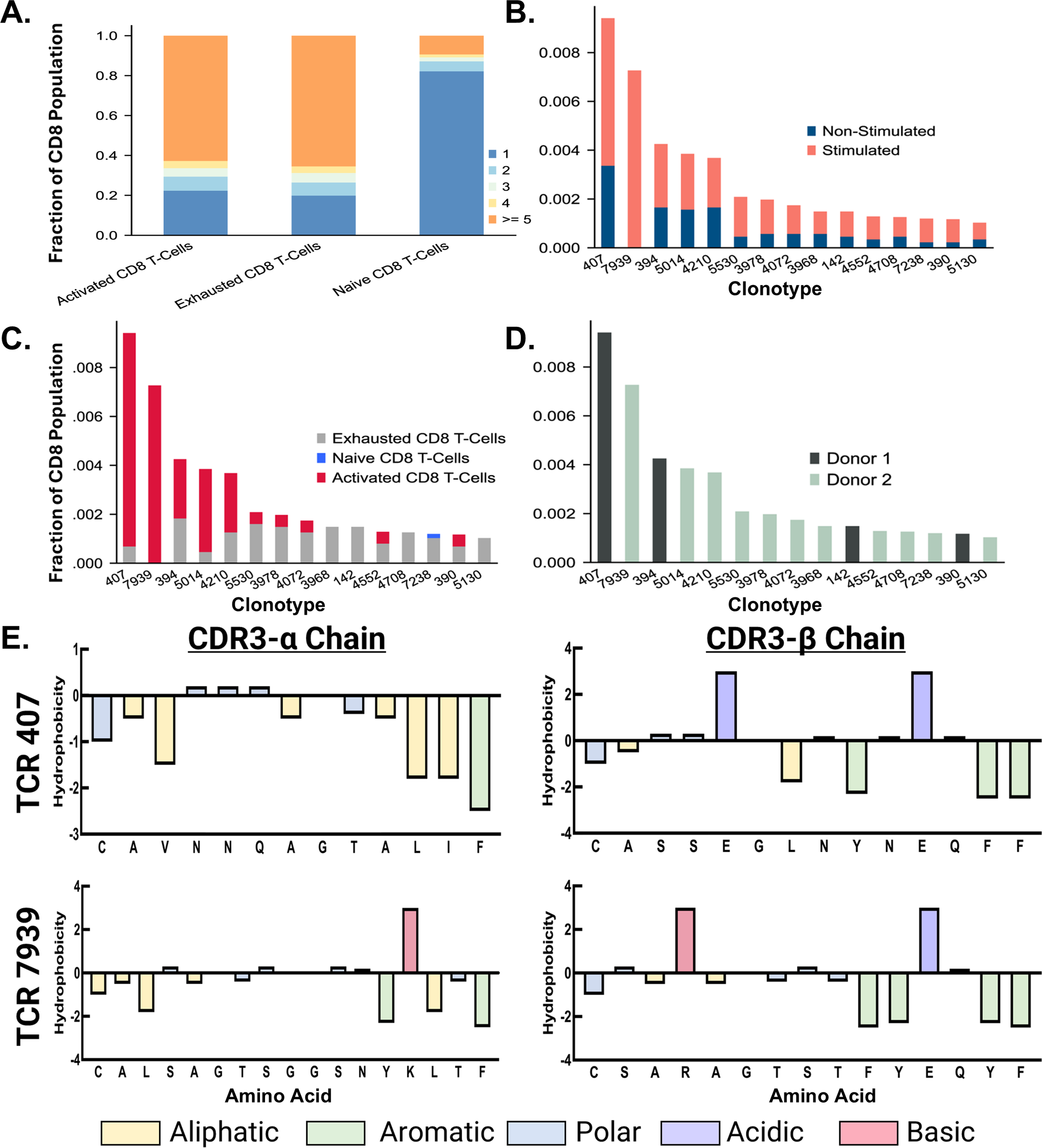 CD8+ T cells were isolated from junction peptide pool stimulated and non-stimulated PBMCs, spun at 500 rpm for 5 min, washed once in PBS (without calcium and magnesium) with 0.04% BSA, and then resuspended. Cell suspensions were loaded onto a 10X Genomics chip N, following the Chromium Next GEM Single Cell 5’ HT Reagent Kits v2 (Dual Index) protocol (CG000423|Rev C). Modular kits for 10X Chromium Connect were used to automate library preparation from cDNA. Gene Expression (GEX) sequencing libraries were generated using the Chromium Next GEM Automated Single Cell 5’ Reagent Kits v2 user guide (CG000384|Rev D). Libraries were assessed for quality using a High-Sensitivity D5000 chip on an Agilent 4200 TapeStation and quantified with a Qubit Flex Fluorometer (Thermo Fisher Scientific). Libraries were pooled by donor and sequenced on NovaSeq X Plus (Illumina) to obtain 150 base paired end reads.