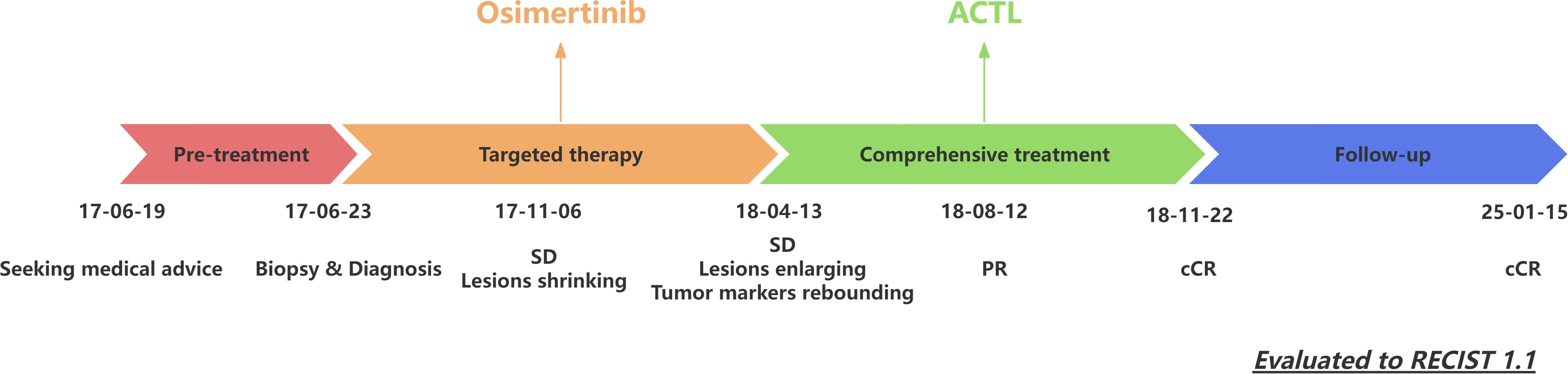 Figure 3. Patient’s treatment timeline. ACTL, antigen-specific cytotoxic T lymphocyte; SD, stable disease; PR, partial response; CR, complete response; RECIST, Response Evaluation Criteria in Solid Tumors.