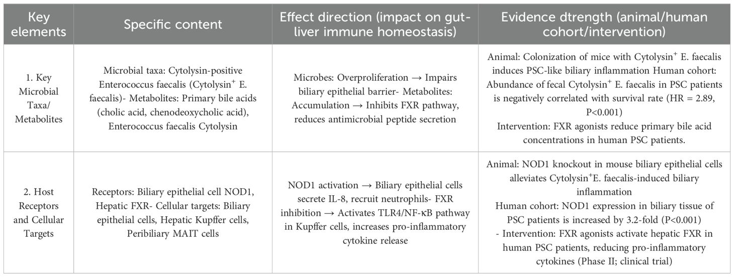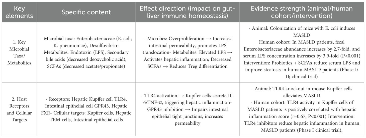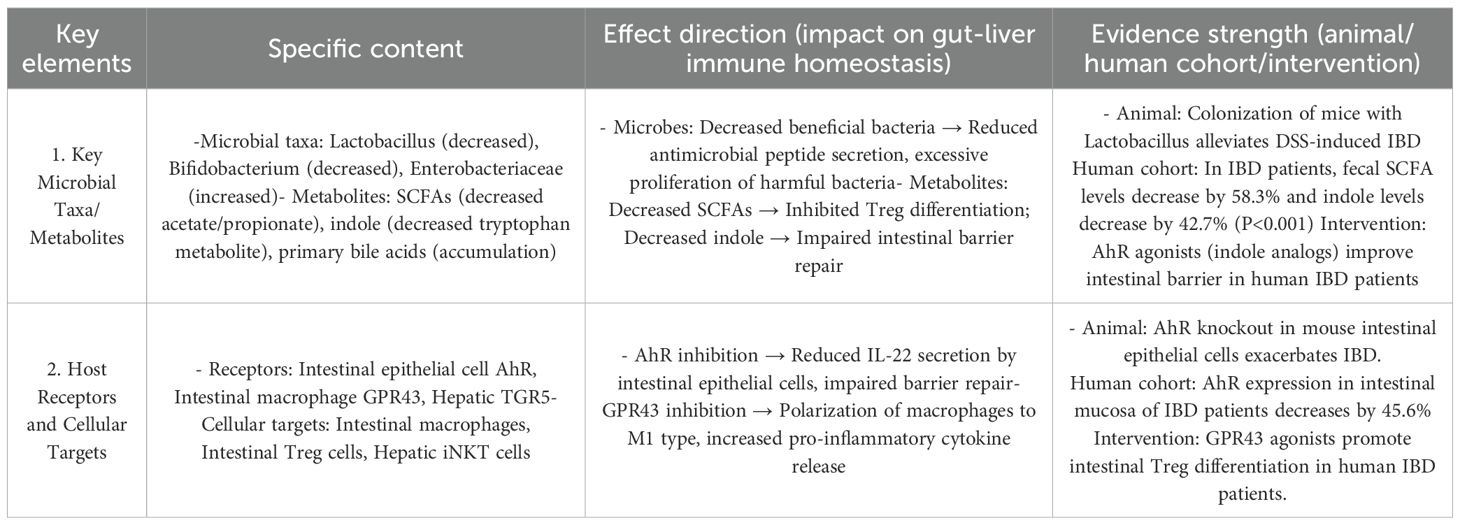 Table 1. The core metabolite→receptor→cell state triad and its immune effects in the gut-liver axis.