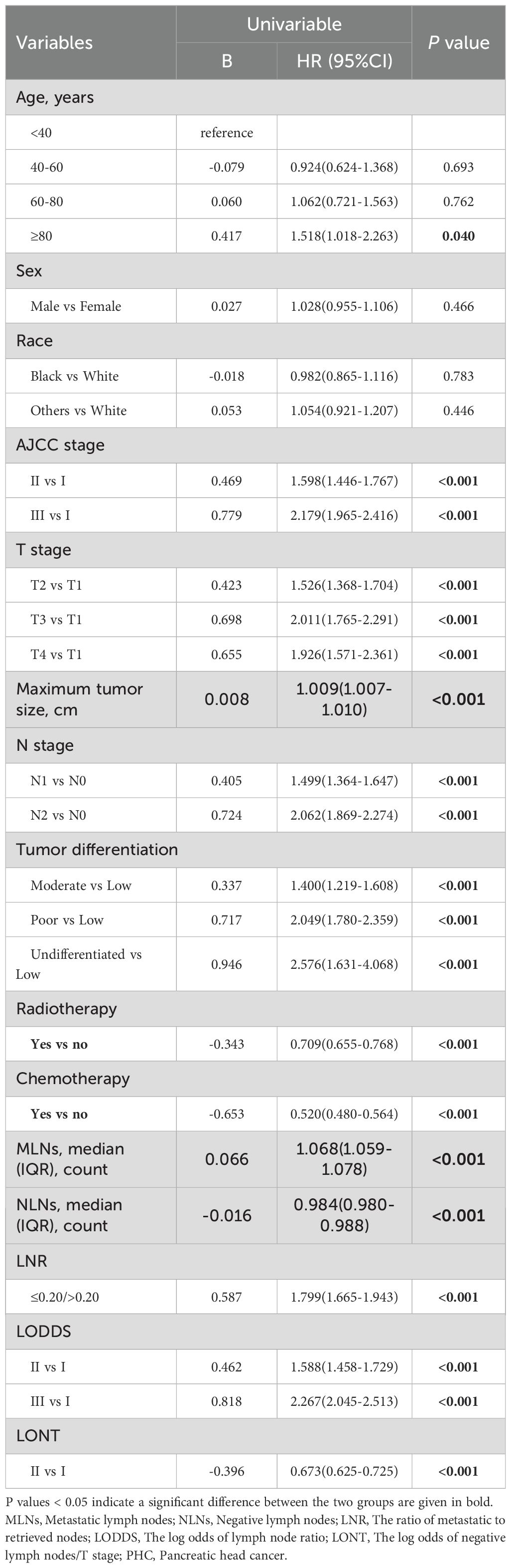 Table 3. Univariable Cox regression analysis for overall survival of patients with PHC in training cohort.