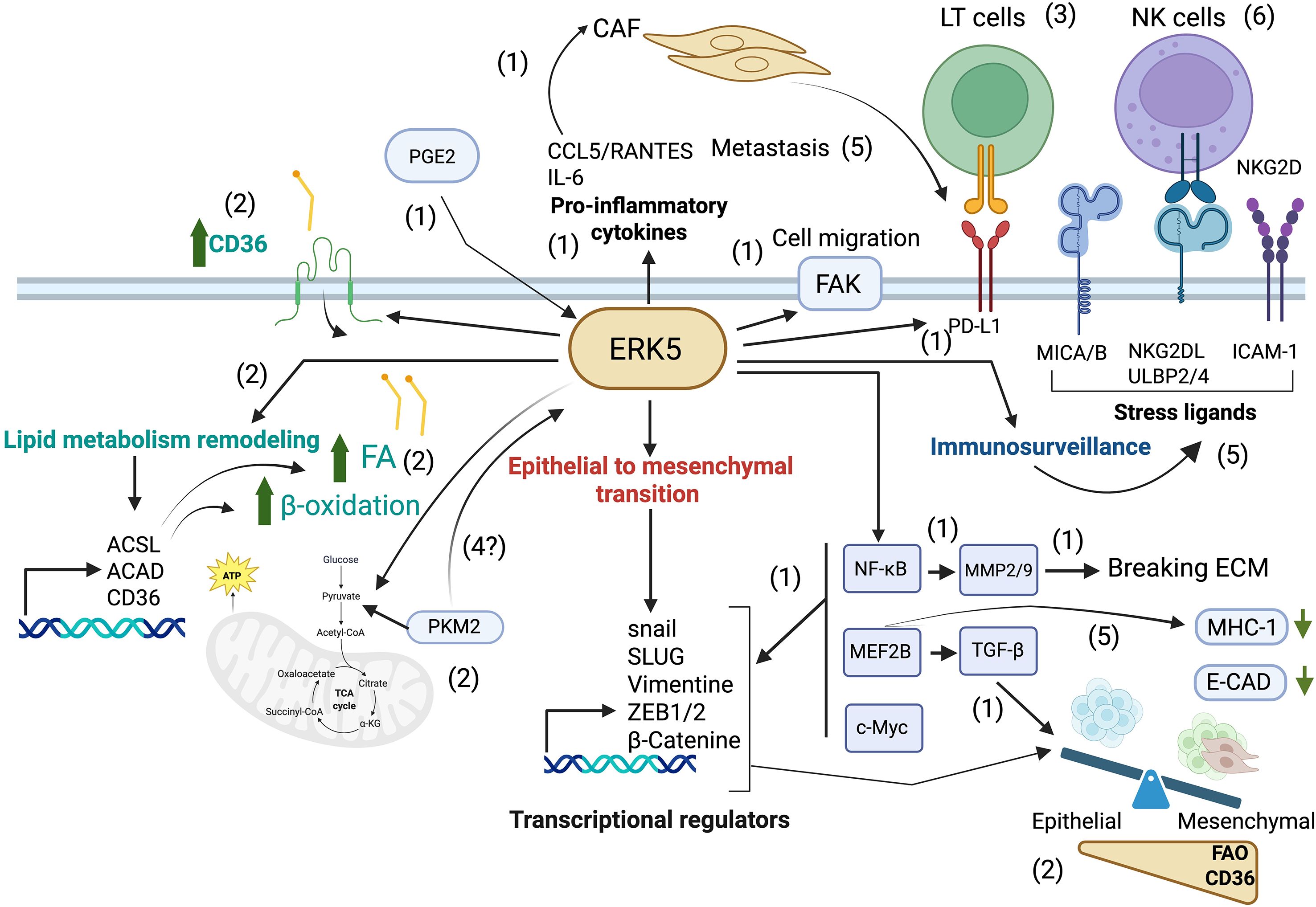 Keywords: Erk5, CD36, fatty acid oxidation (FAO), epithelial-mesenchymal transition (EMT), natural killer (Nk) cell, immune surveillance