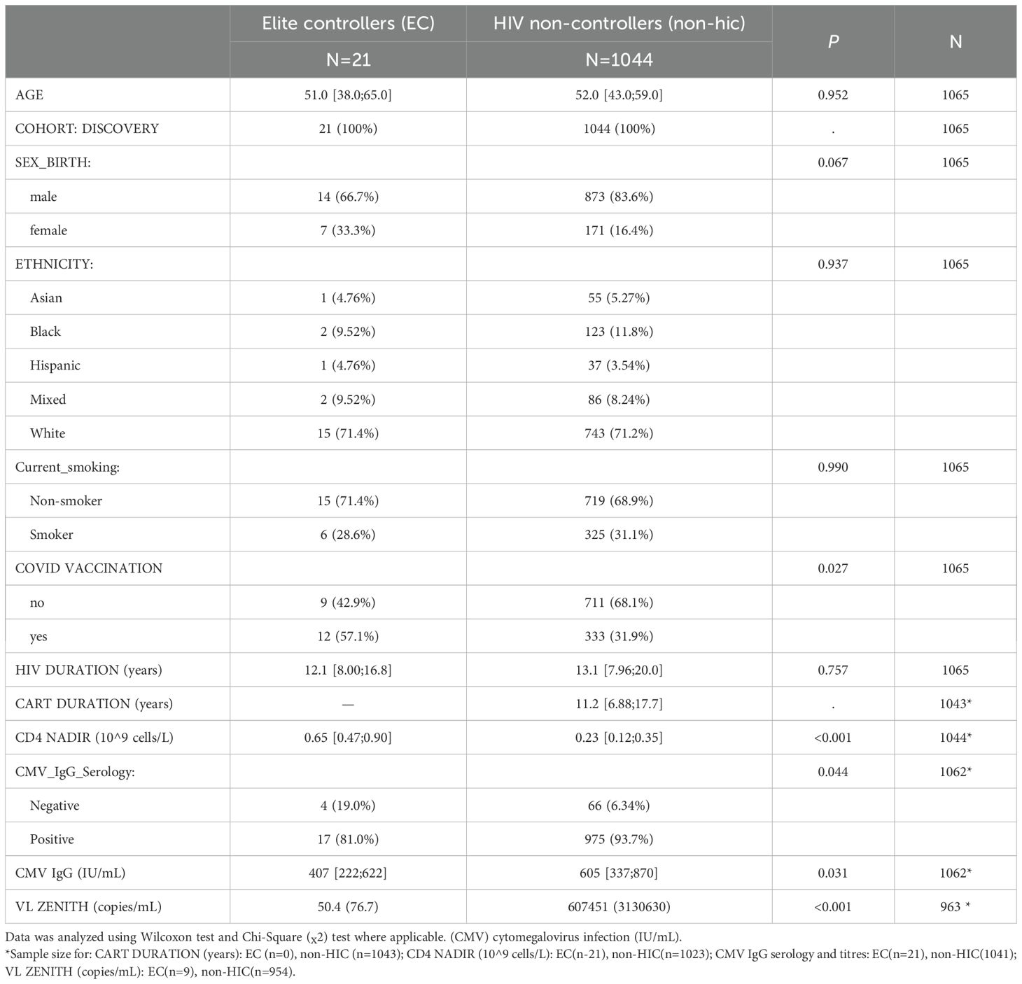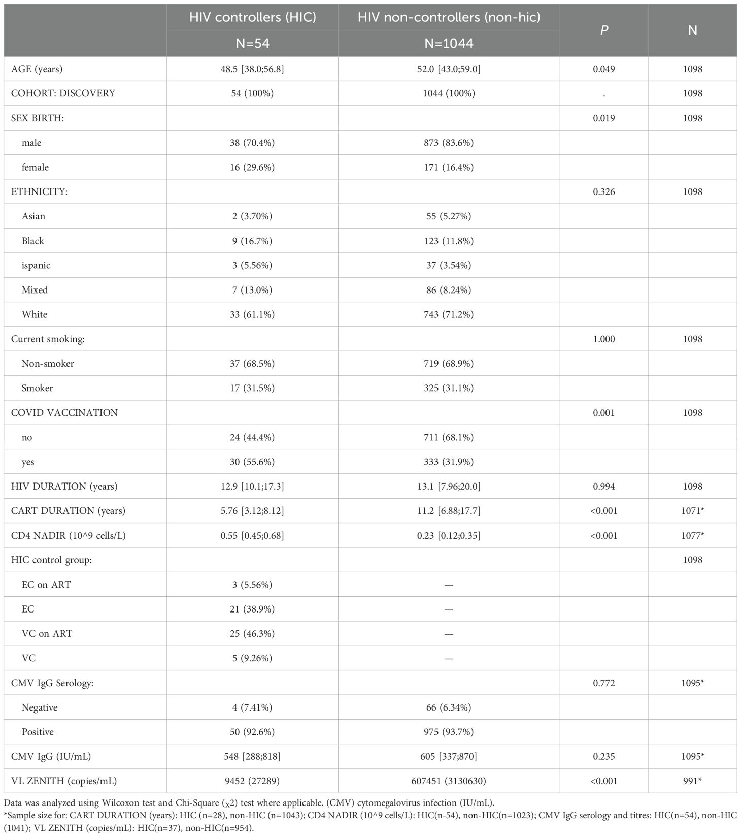 Table 1. Clinical characteristics of HIC participants with flow cytometry data available from the discovery cohort.