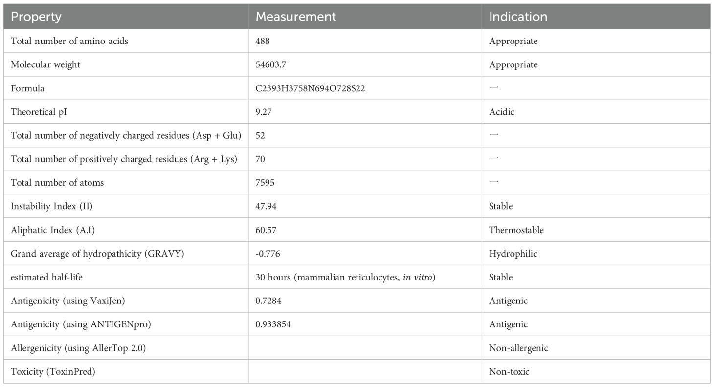 2.8 Prediction of antigenicity, allergenicity, toxicity and physicochemical properties of the vaccine construct