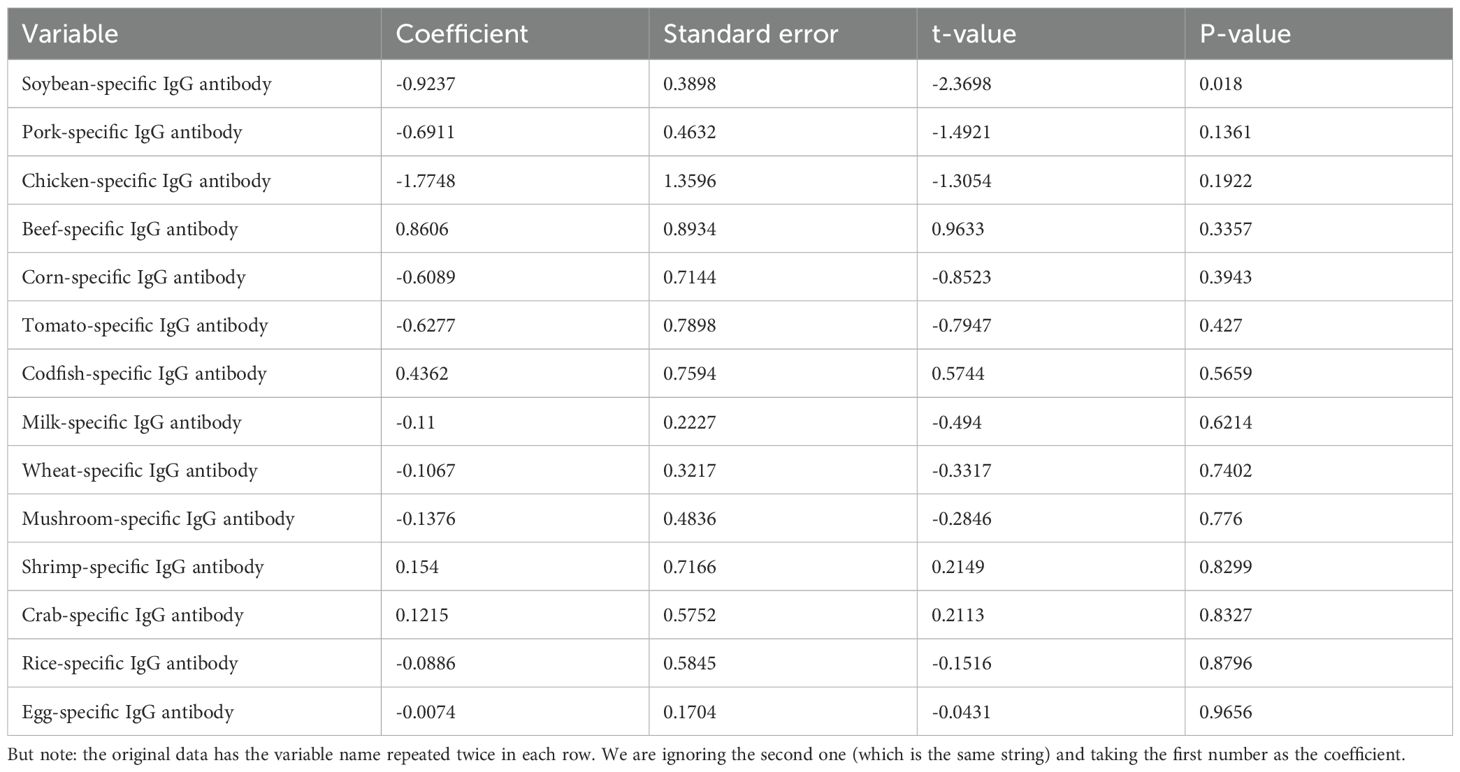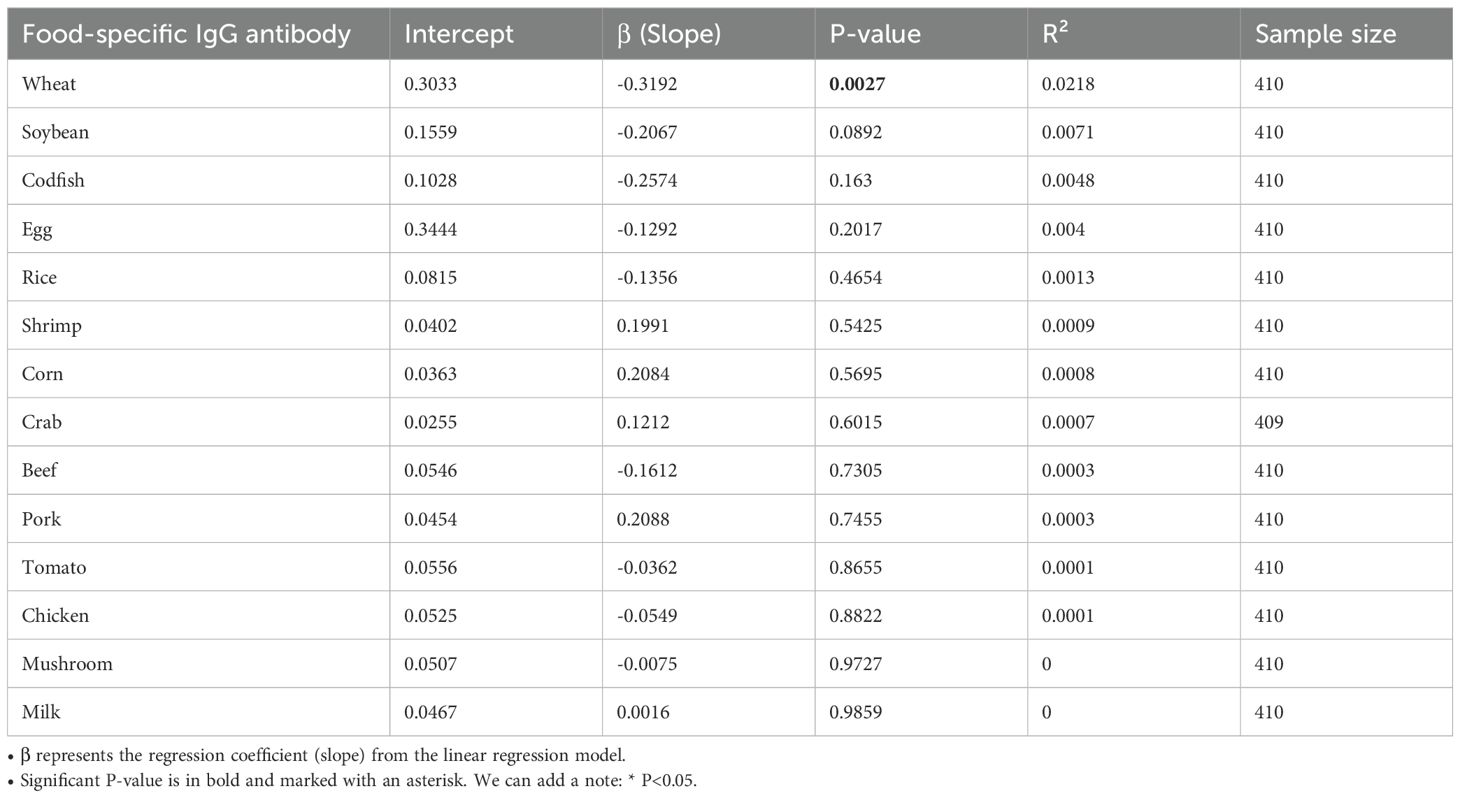 Table 5. Linear regression analysis of food-specific IgG antibodies and their association with BAZ in pediatric population.