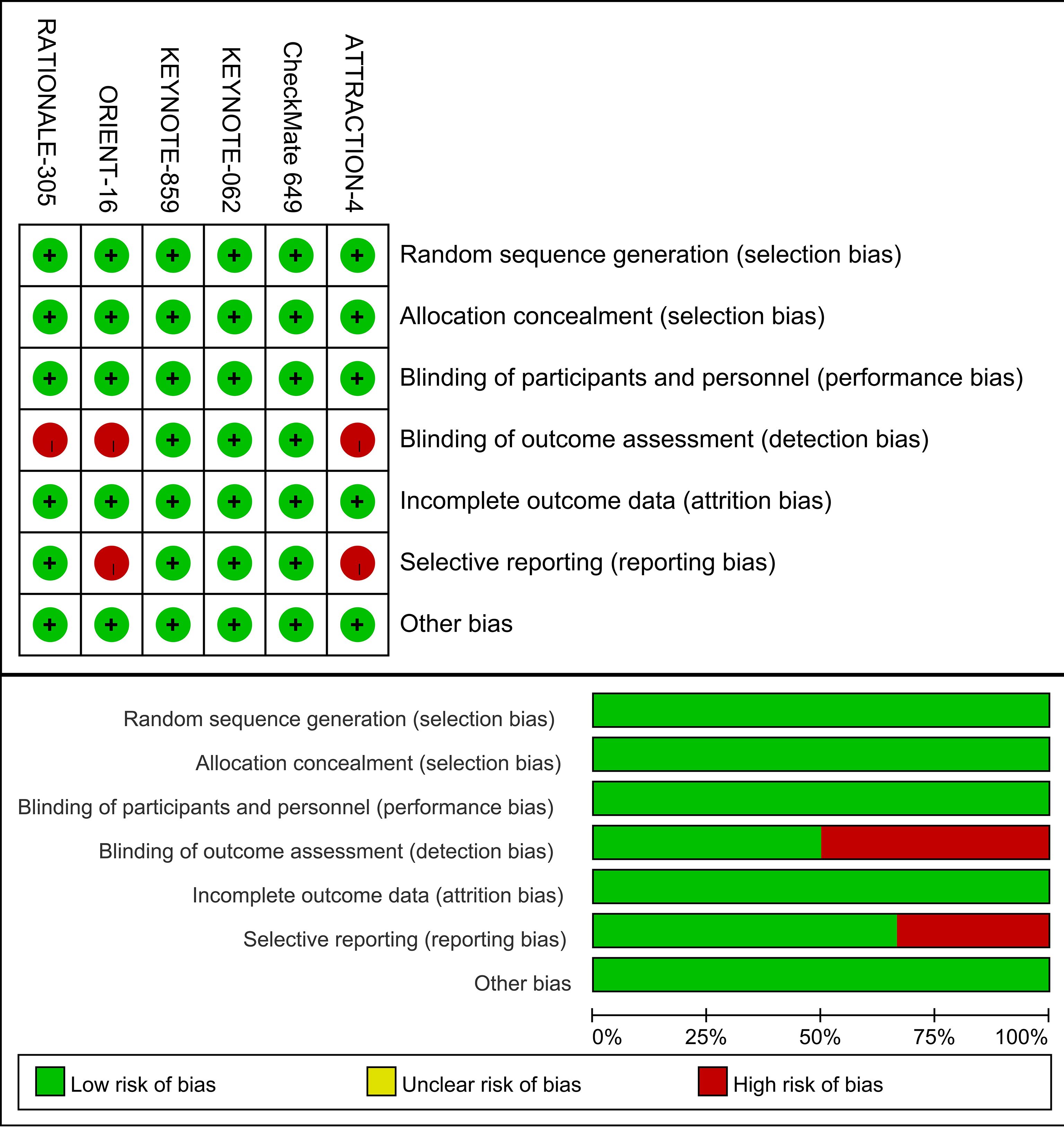 Future studies should aim to provide more comprehensive subgroup analyses to better understand the differential treatment effects across diverse patient populations and characteristics. The assessment of outcome measures should be conducted through a centralized review process. Tumor response was assessed per response evaluation criteria in solid tumors (RECIST) version 1.1 by blinded independent central review (BICR). Disease progression was confirmed through central review. Investigators, participants, site staff, and funder personnel were masked to group assignment. Additional RCTs with robust trial designs and follow-up periods exceeding five years are needed to validate these findings. Moving forward, it is hoped that personalized precision immunotherapy, guided by population screening and treatment optimization, will provide greater clinical benefits to patients. The combination of PD-1 inhibitors plus chemotherapy has demonstrated remarkable efficacy and identifying optimal regimens, dosing strategies, and treatment protocols remains a major challenge. More precise biomarkers such as tumor mutational burden (TMB), genomic expression profile (GEP), and TIME should be investigated in the future. Systematic study and development of these biomarkers can better identify patients eligible for immunotherapy, predict treatment outcomes, and steer therapies toward precision medicine. Future research should focus on optimizing combination regimens and determining optimal treatment cycles to achieve extended survival benefits.