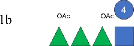 na | 47.0 (46%) | 14.0 (54%) | 147 | 1.2 (RhaIII 4OAc + GlcNAc 6OAc):1 (RhaIII 3OAc) |