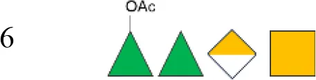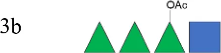 860 | 56.6 (67%) | 15.7 (33%) | 38 | 3.4 (RhaIII 4OAc + GlcNAc 6OAc):1 (RhaIII 3OAc) |