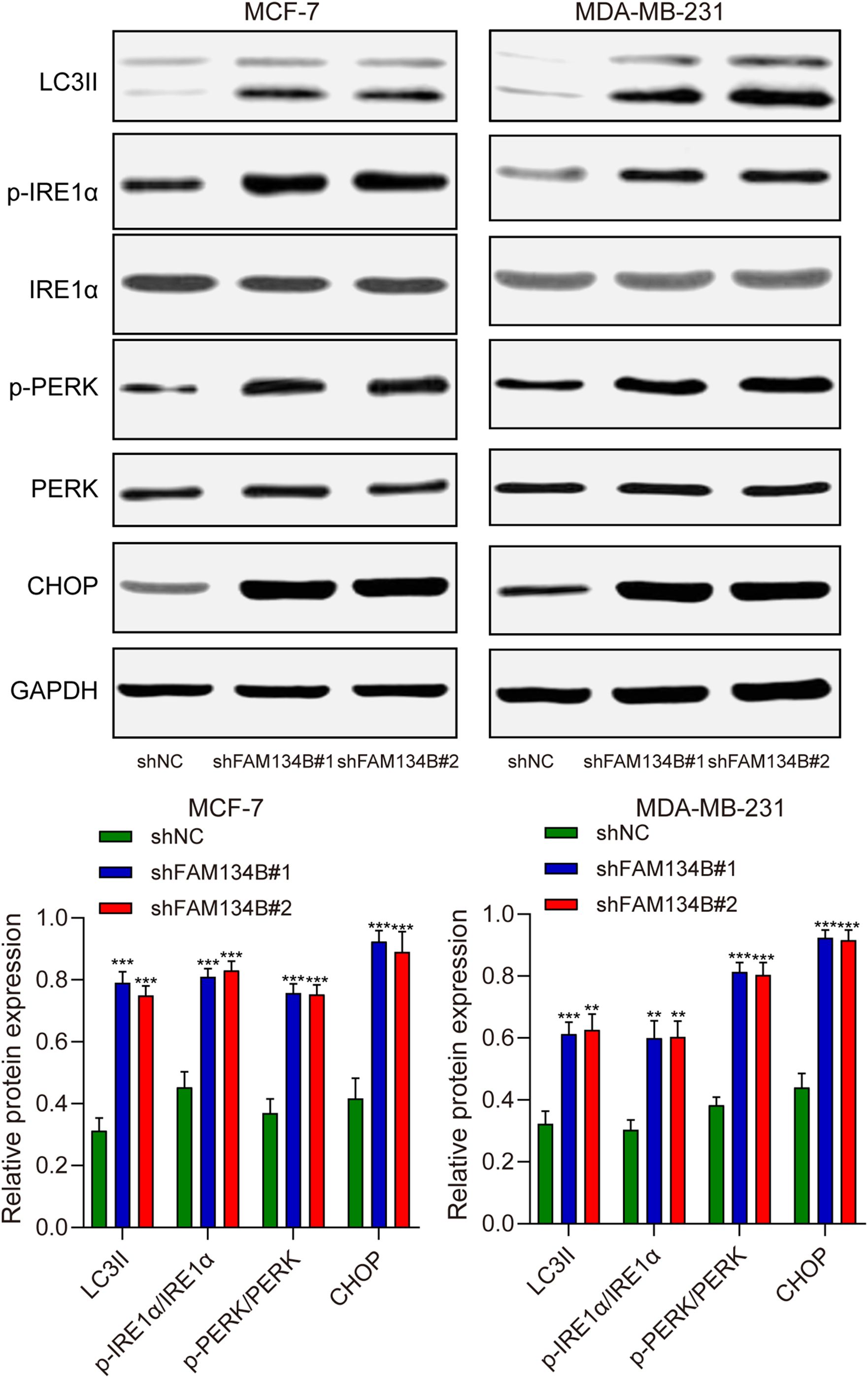 3.4 shFAM134B promoted the expression of ER stress related proteins in breast cancer cells