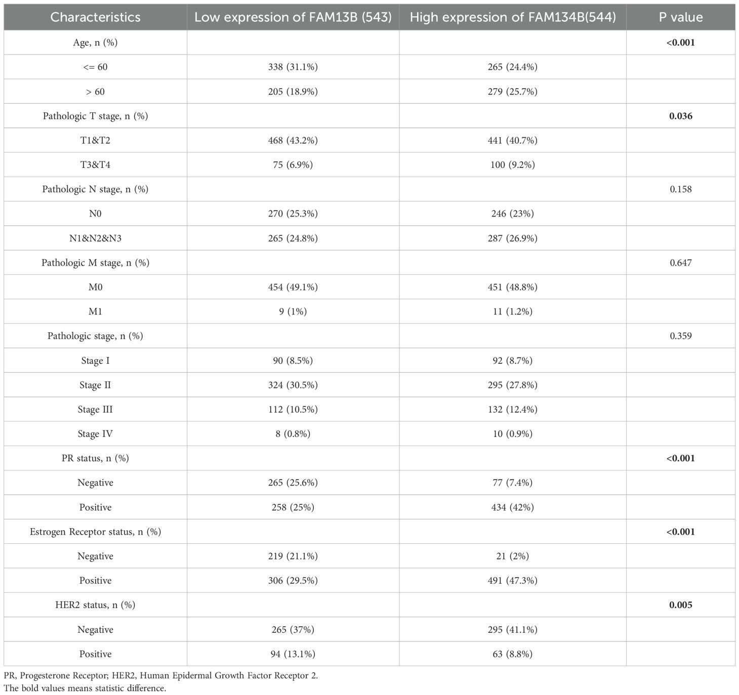 Table 2. Correlation between FAM134B expression and clinicopathologic characteristics of breast cancer.