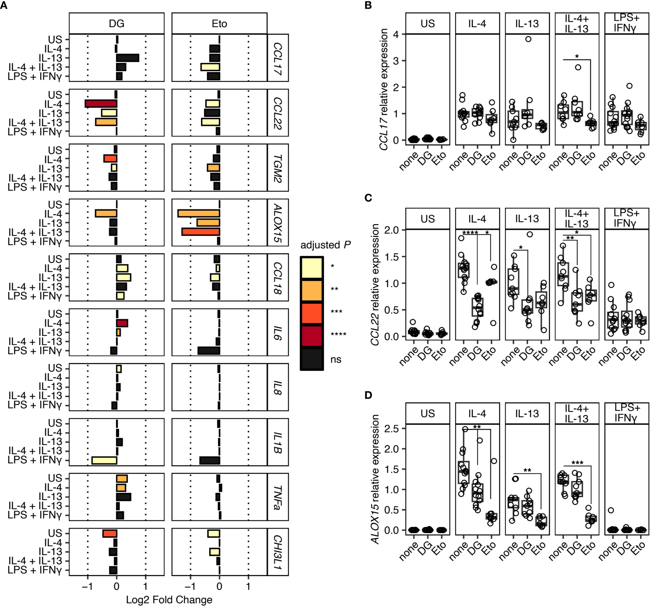 Here, we demonstrate that CCL17, CCL22, ALOX15, CCL18 and TGM2 represent reliable markers of human lung macrophage type 2 activation, and that expression of these markers show distinct metabolic regulation to their type 1 counterparts.