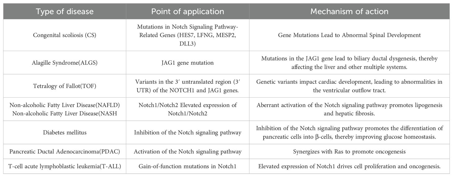 The Notch signaling pathway was first discovered in mutant fruit flies, where the notched wing phenotype was caused by mutations in this gene (2), leading to the gene being named Notch. It was subsequently isolated in 1983 (3). The pathway is widely present in both invertebrates and vertebrates and is highly conserved throughout the evolutionary process of various species. Research has shown that the Notch signaling pathway is prevalent in multicellular organisms, facilitating intercellular communication via receptor-ligand interactions and significantly influencing cell differentiation, proliferation, apoptosis, and cell cycle regulation. The Notch signaling pathway plays a crucial regulatory role in multicellular animal development, tissue renewal, cellular homeostasis, and the pathogenesis of various diseases (4). The Notch signaling pathway’s dysregulation or loss is implicated in various human diseases, including developmental syndromes, adult disorders, and tumors (5).