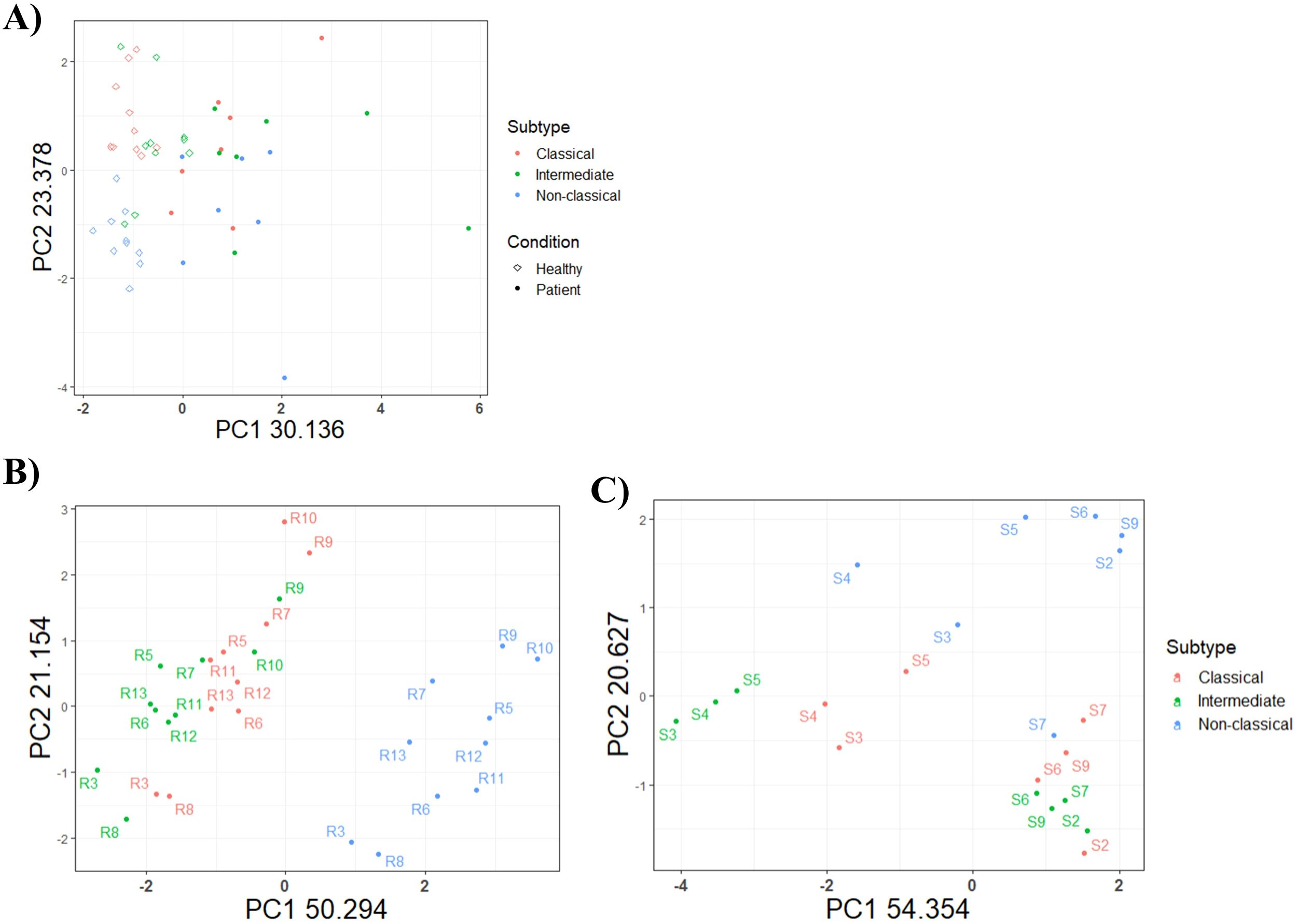 4.8 The classical and intermediate subtypes were the most closely related subtypes in both healthy and septic shock patients