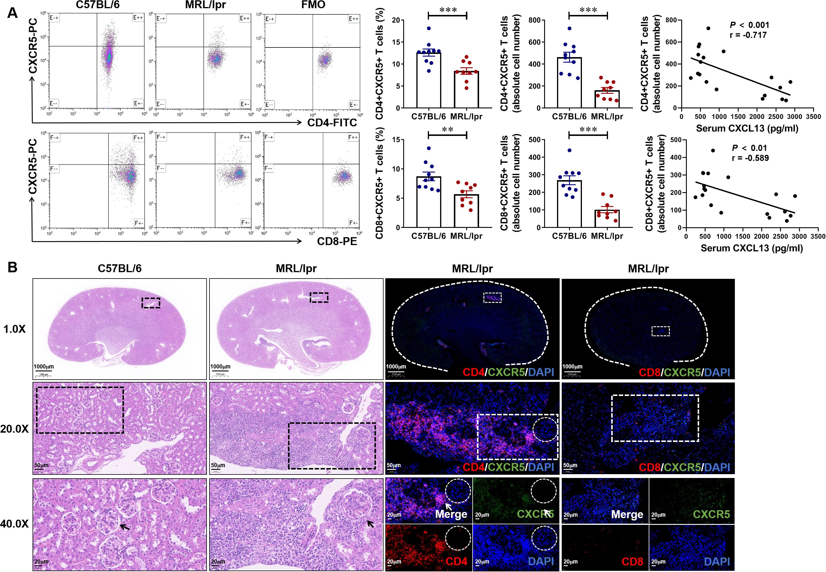 3.3 The recruitment of CD4+CXCR5+ T cells at the site of glomerulonephritis in MRL/lpr lupus mice was significantly increased