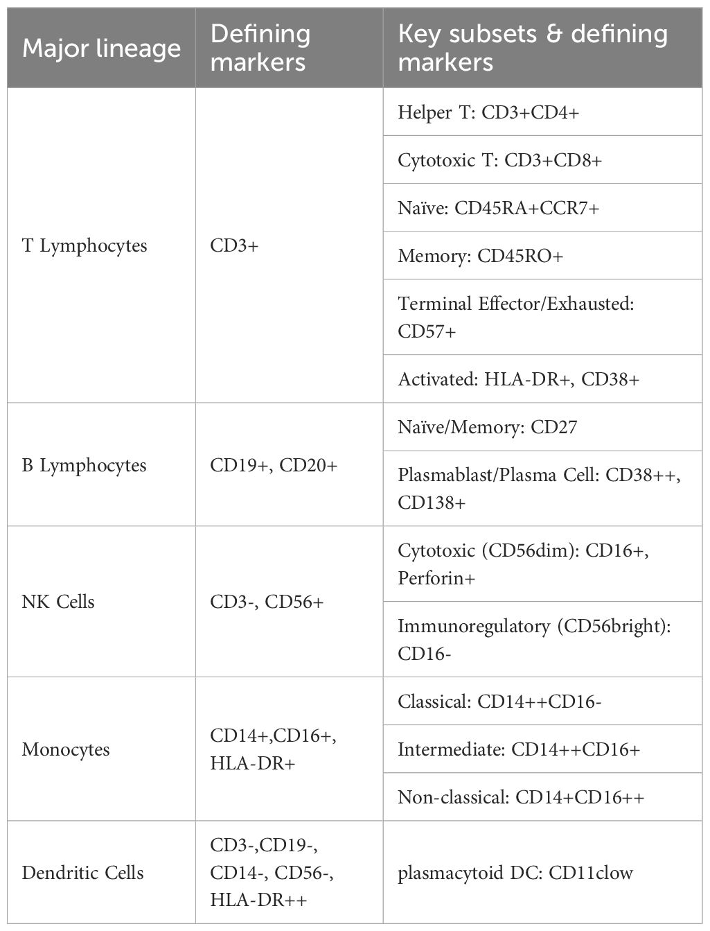 Table 1. Universal markers for defining major immune cell lineages.