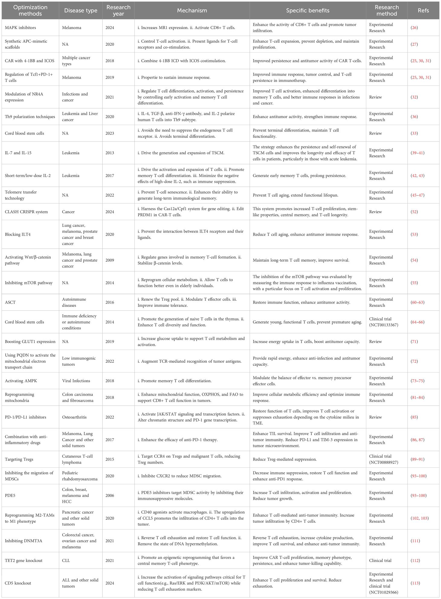 Keywords: T-cell enhancement, tumor immunotherapy, T-cell exhaustion and aging, metabolic regulation, microenvironment optimization