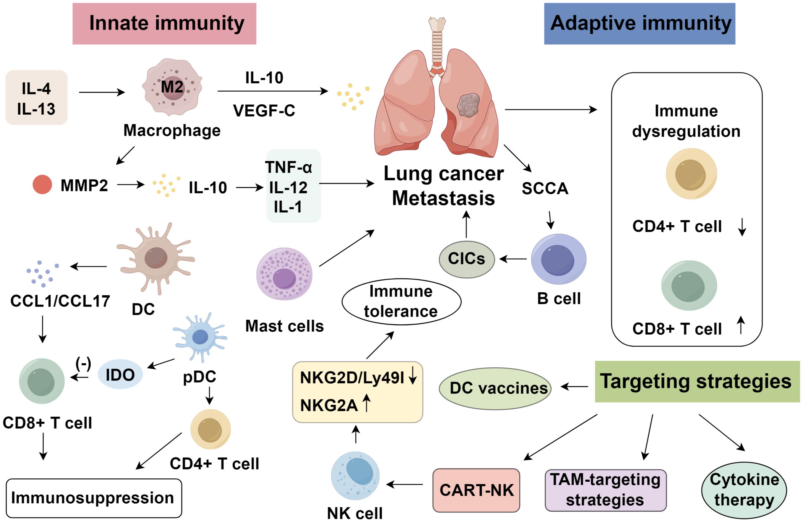 Keywords: lung cancer, adaptive immune cells, innate immune cells, immune dysregulation, metastasis, therapeutic target