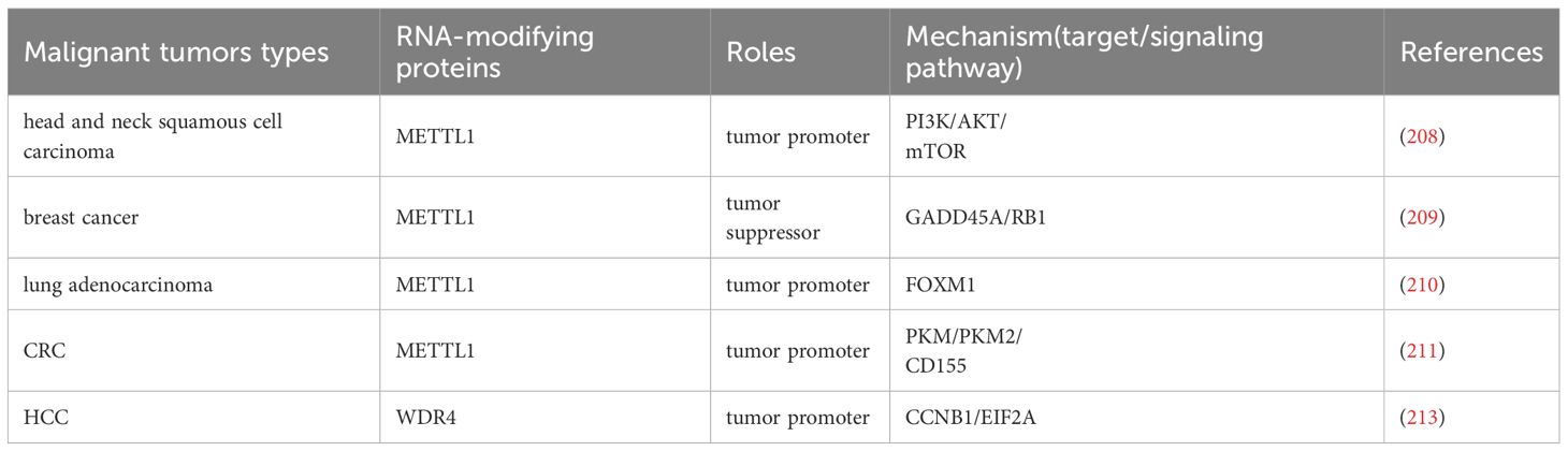 Keywords: RNA methylation modification, writer, malignant tumor, mechanism of action, targeted therapy