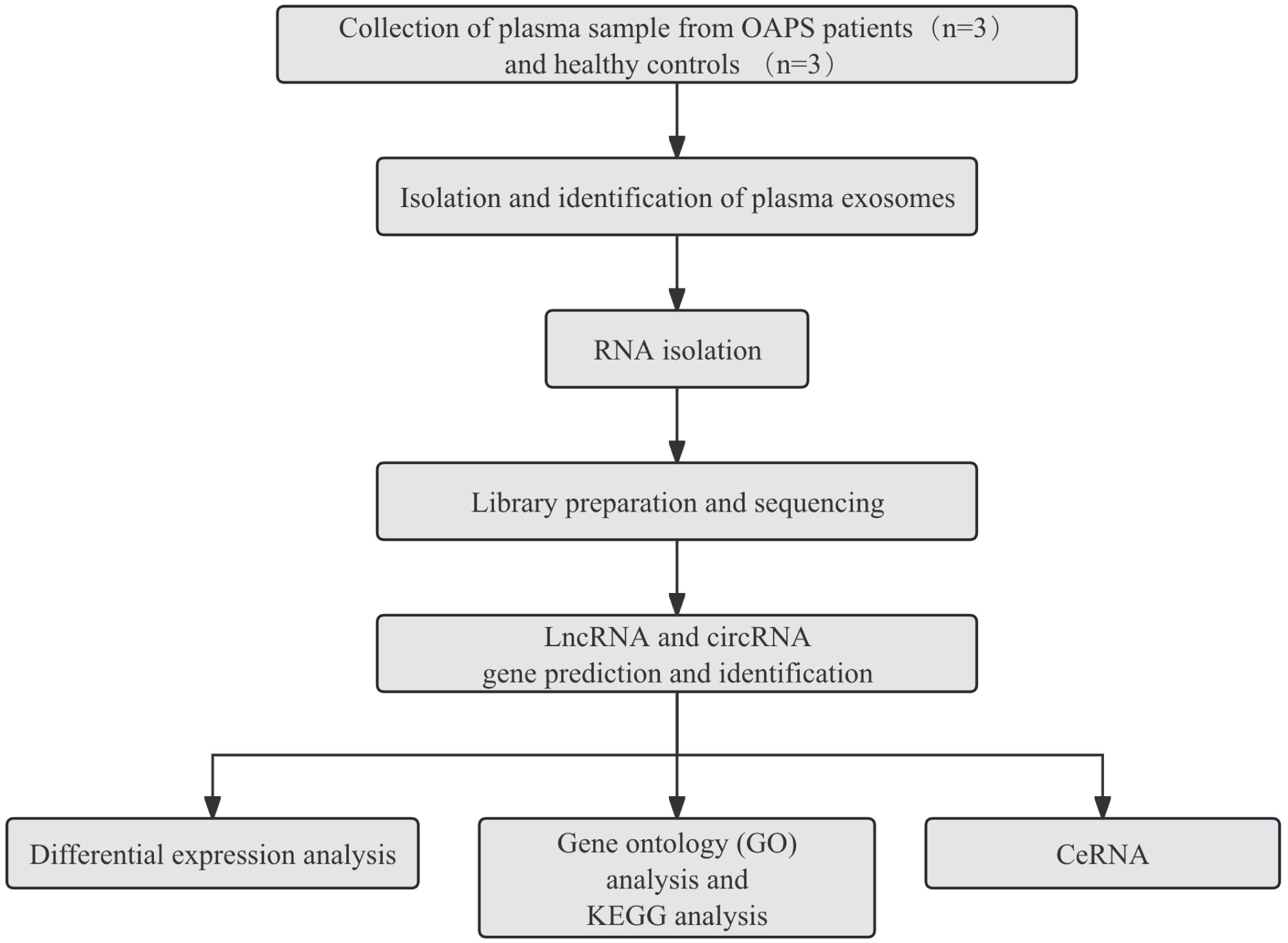 Therefore, a comprehensive investigation of both non-coding and coding RNAs in plasma-derived exosomes is essential for understanding the molecular mechanisms of OAPS. In this study, we generated RNA-seq datasets for lncRNAs, circRNAs, miRNAs, and mRNAs from plasma exosomes isolated from three OAPS patients and three healthy controls. These data provide a valuable resource for researchers to explore the roles of non-coding and coding RNAs in OAPS and to identify potential imbalances in exosomal RNA profiles under pathological versus normal conditions.
