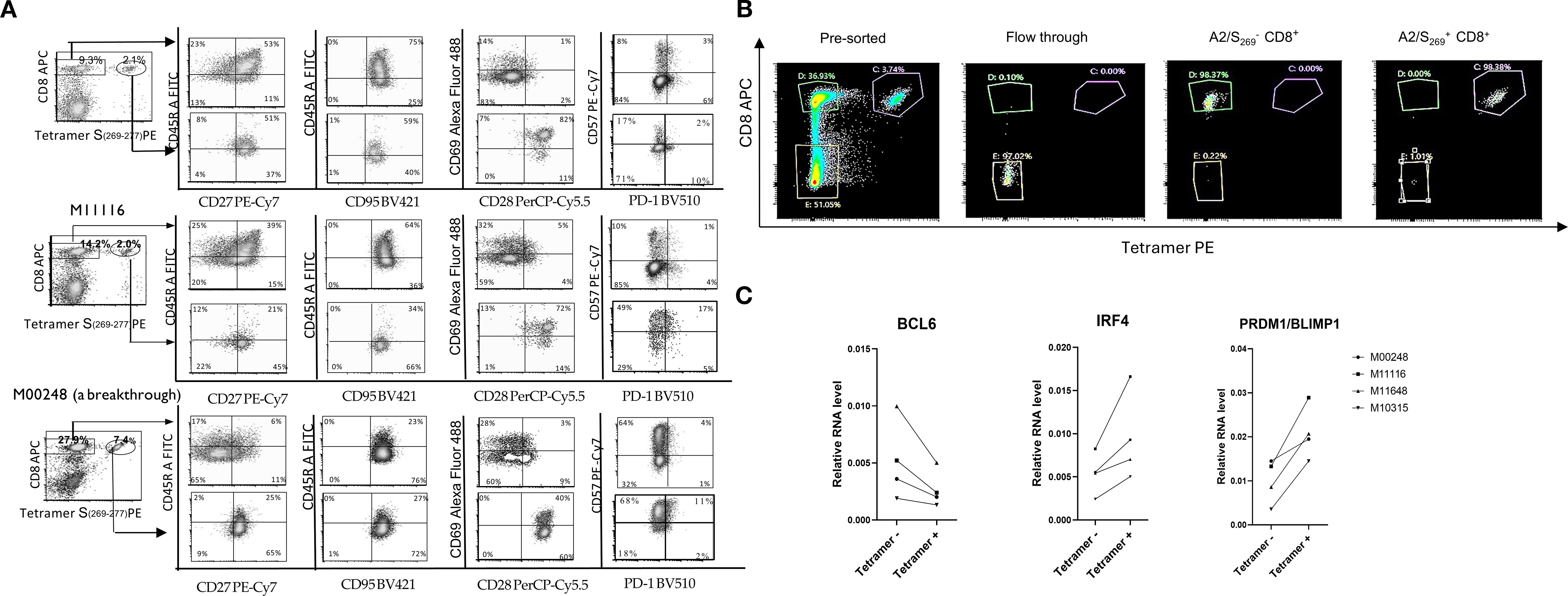 3.9 Increased expression of IRF4 and PRDM1/BLIMP1 and decreased expression of BCL6 in A2/S269+CD8+ T cells