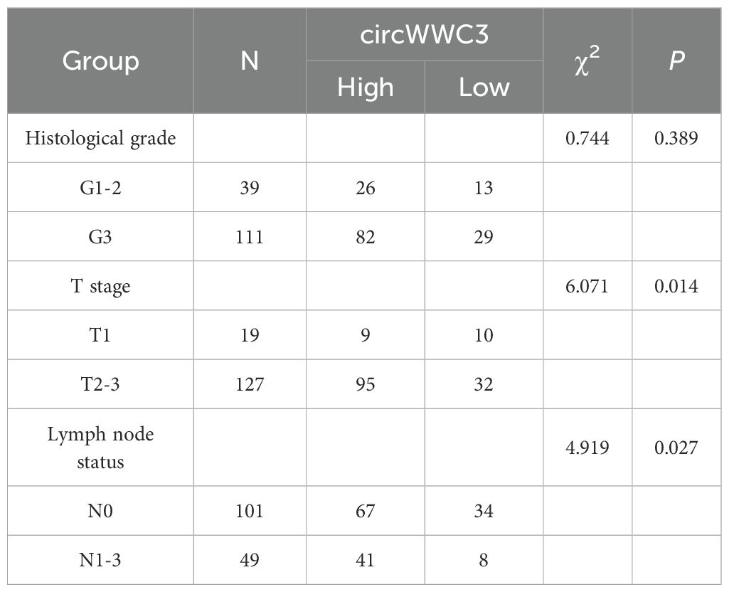 3.2 Expression of circWWC3 in TNBC tissues and its relationship with the clinical pathological indicators of patients