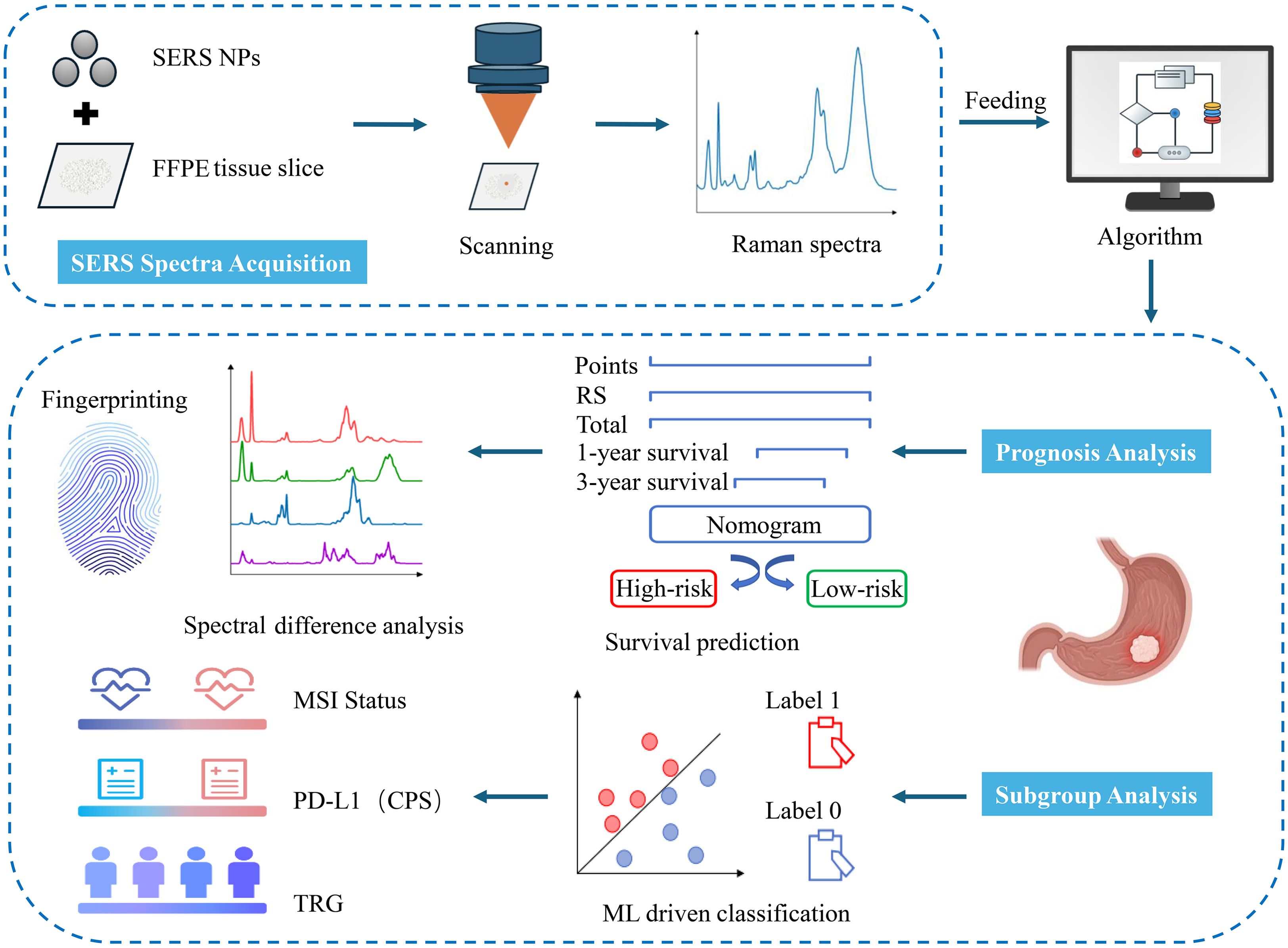 This study demonstrates not only the ability of label-free SERS to precisely predict prognosis in LAGC following NACI, but also the potential of SERS in biomolecular and histopathological analysis. SERS provides efficient and comprehensive analytical capabilities. Beyond GC, the adaptability of this technique can also be applied to other diseases, highlighting its extensive translational potential.