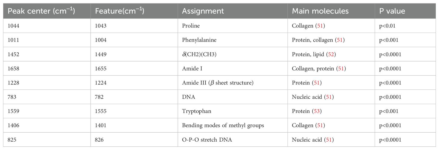 Table 4. Characteristic Raman bands between high-risk and low-risk groups, and their assignment to biochemical components.