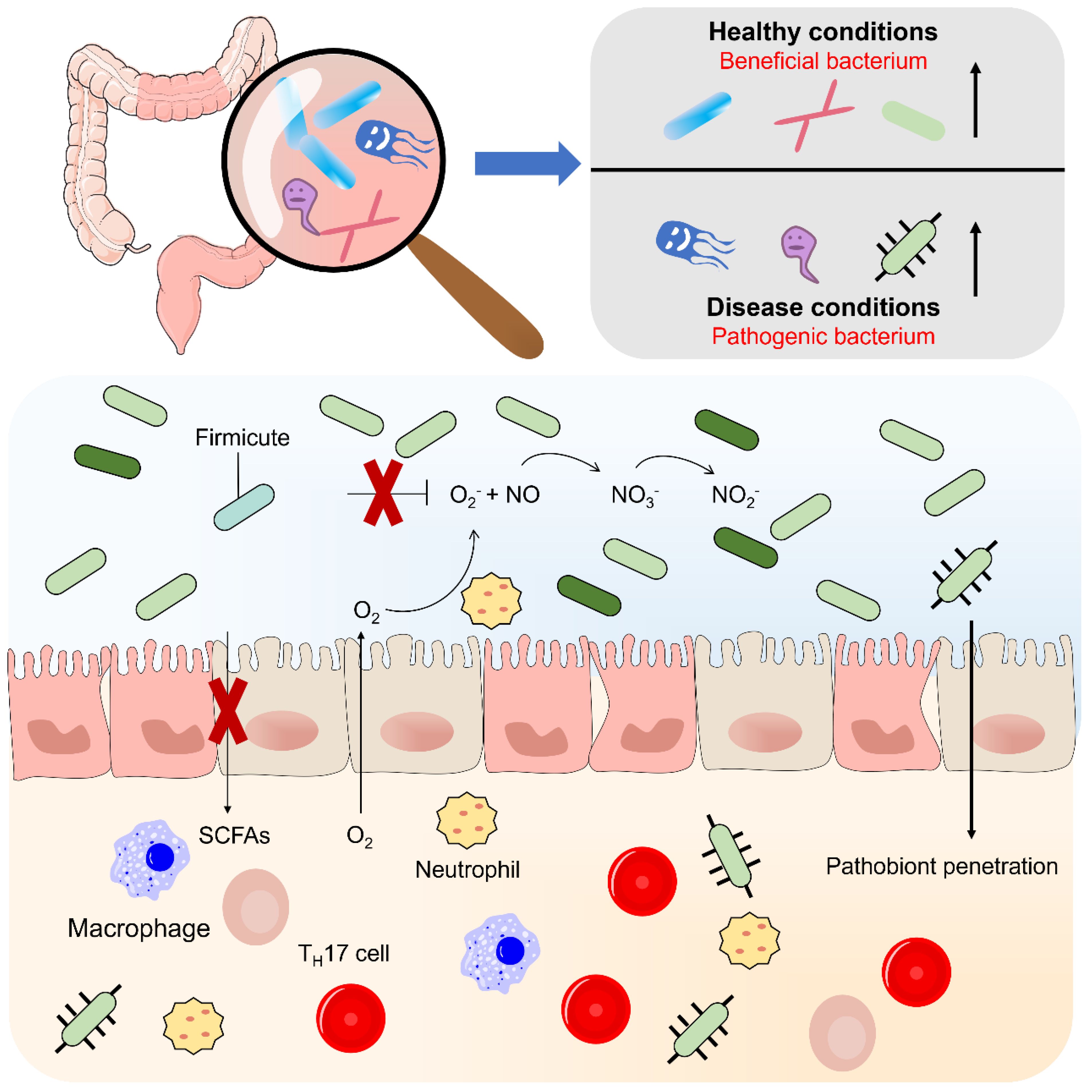 3 Disruption of the intestinal upper barrier and imbalance of the microbiome