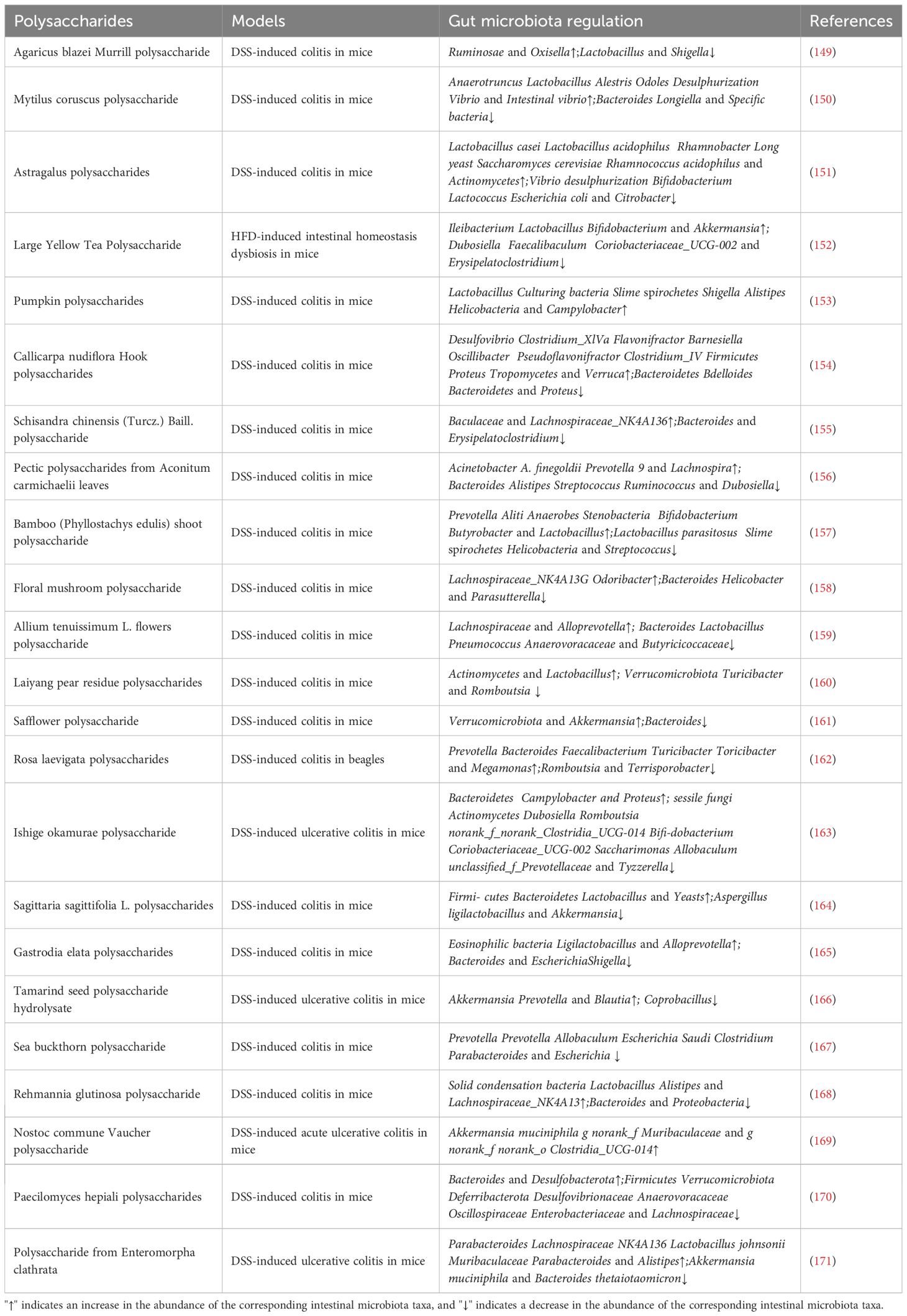 182. Song Q, Wang Y, Huang L, Shen M, Yu Y, Yu Q, et al. Review of the relationships among polysaccharides, gut microbiota, and human health. Food Res Int. (2021) 140:109858. doi: 10.1016/j.foodres.2020.109858