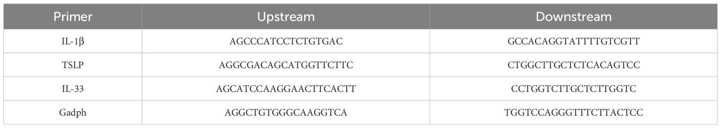 IgE, IL-1β, TSLP and IL-33 inflammatory factors and S.aureus CFU were quantitatively analyzed, and Gapdh was used as substrate. The sequence used is shown in the Table 2.