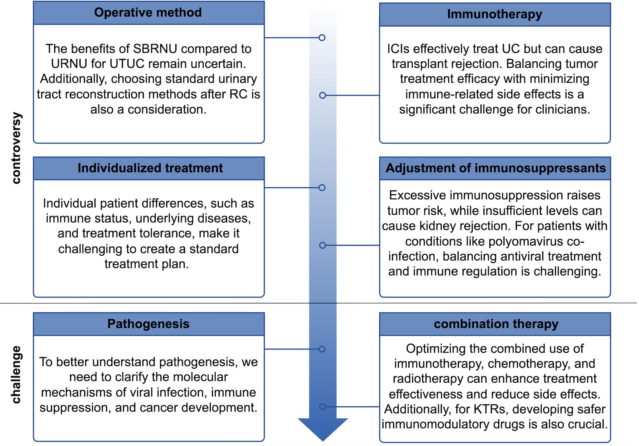 Figure 3. Controversies and challenges faced by kidney transplant recipients with urothelial carcinoma.