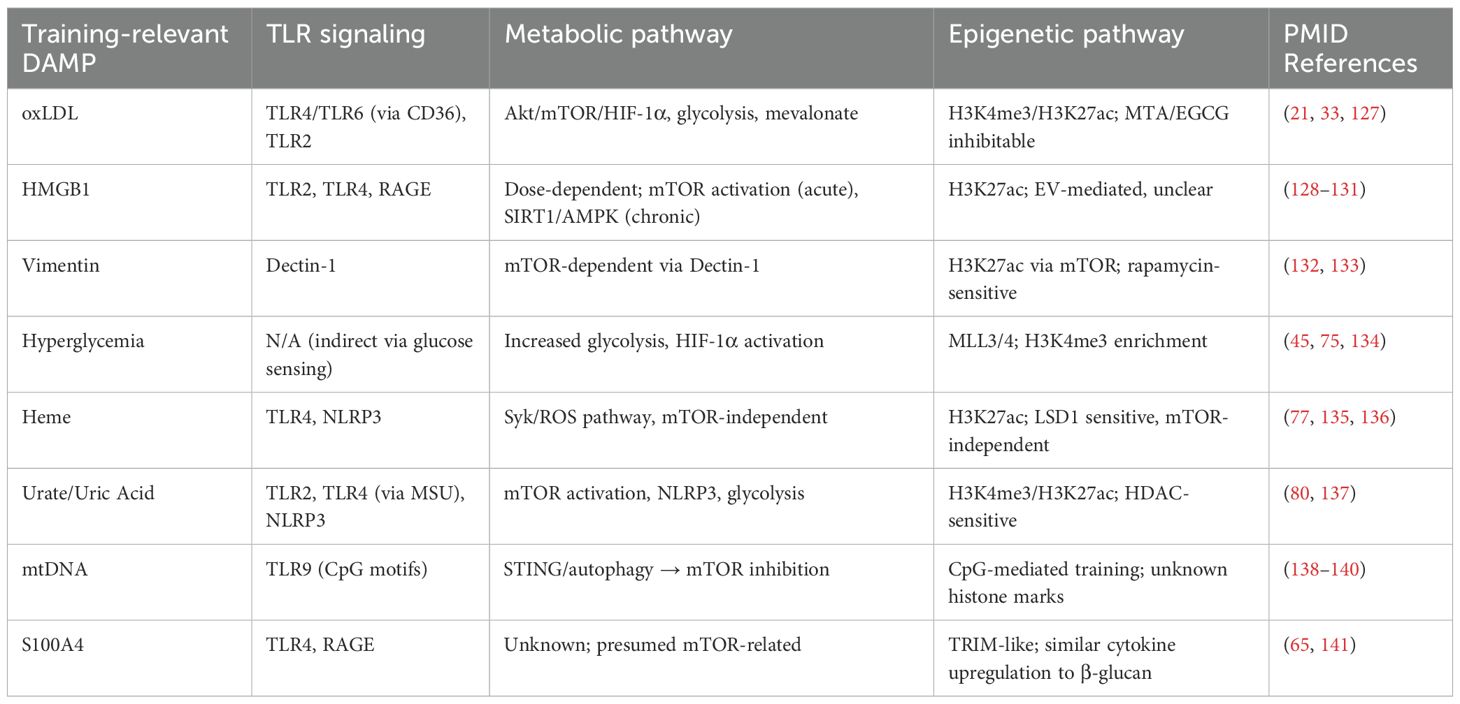 Table 1. Key pattern recognition receptors, metabolic programs, and epigenetic mechanisms involved in DAMP-induced trained immunity.