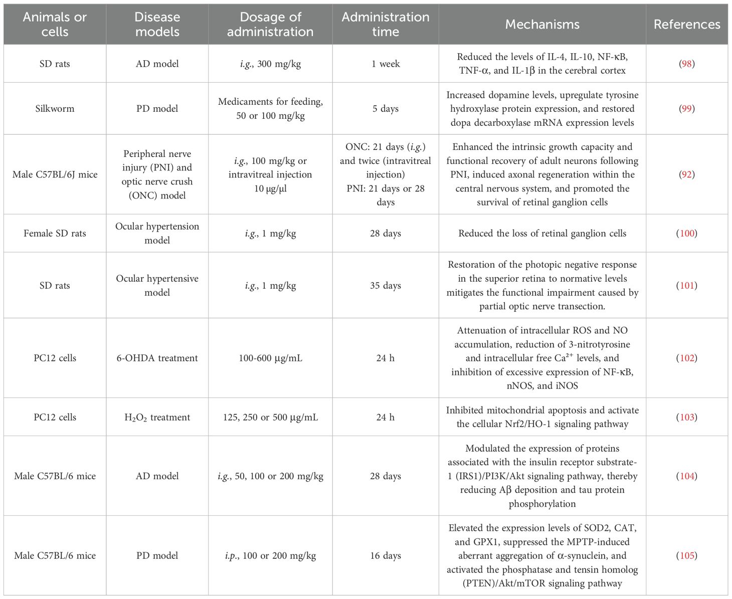 105. Wang X, Pang L, Zhang Y, Xu J, Ding D, Yang T, et al. Lycium barbarum polysaccharide promotes nigrostriatal dopamine function by modulating pten/akt/mtor pathway in a methyl-4-phenyl-1,2,3,6-tetrahydropyridine (Mptp) murine model of parkinson’s disease. Neurochemical Res. (2018) 43:938–47. doi: 10.1007/s11064-018-2499-6