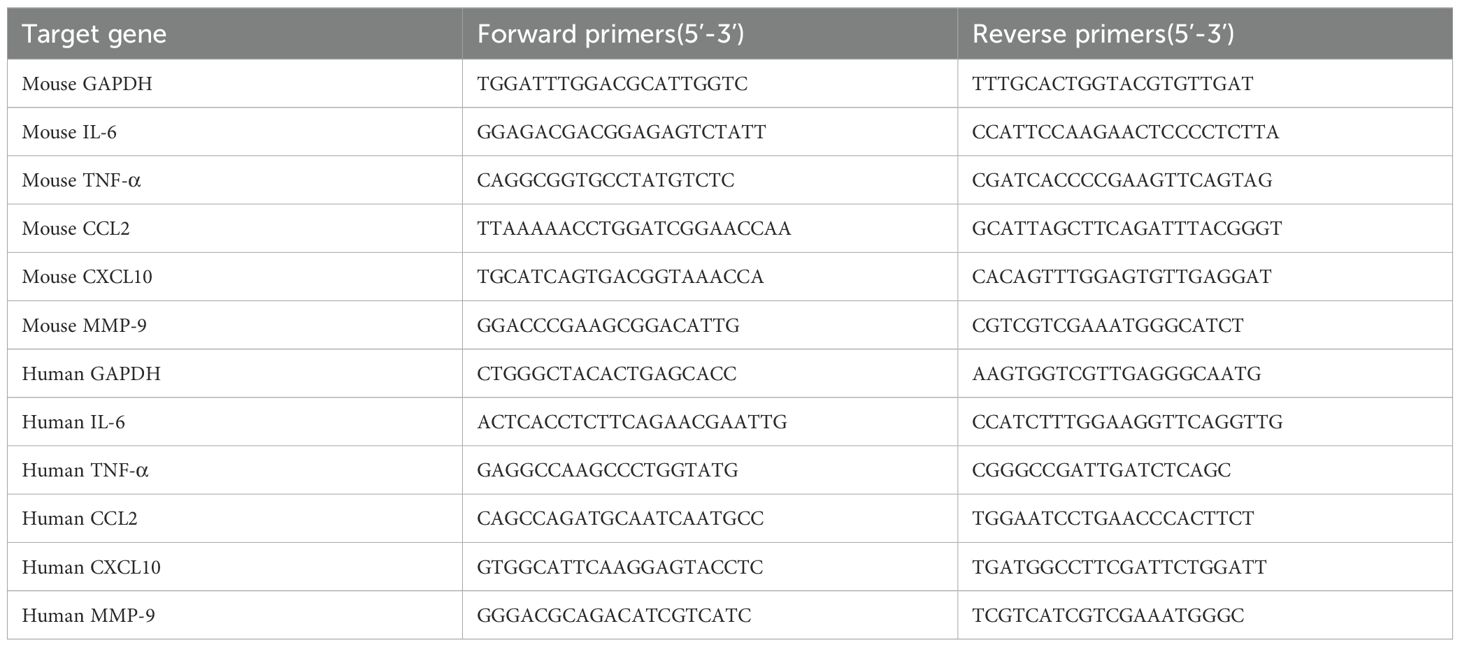 Total RNA was isolated using TRIzol Reagent (Thermo Fisher Scientific) and reverse-transcribed to cDNA using MightyScript First Strand cDNA Synthesis Master Mix. RT-qPCR was performed with SGExcel FastSYBR Mixture (Sangon Biotech, Shanghai, China) on a Quant Gene 9600 Real-Time PCR System. Relative expression was calculated using the 2^−ΔΔCt method, with GAPDH as the reference gene. Primer sequences are listed in Table 1.